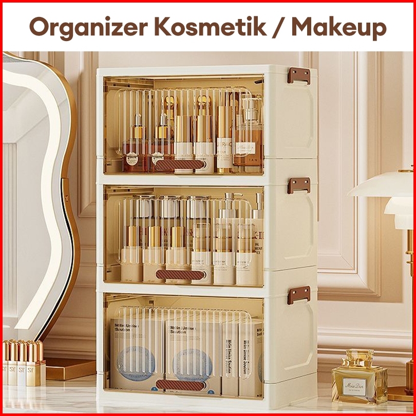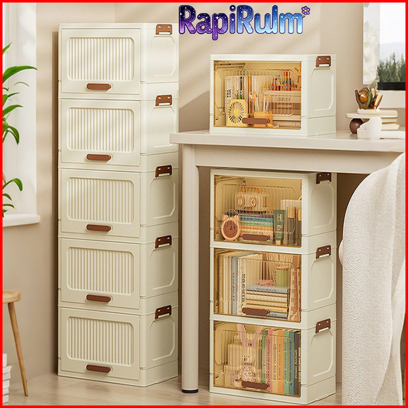 Salvo Lemari Penyimpanan Meja Flip-top Transparan Rak Buku Kosmetik Piring Dapur Multifungsi Dilipat Hemat Ruang Desain