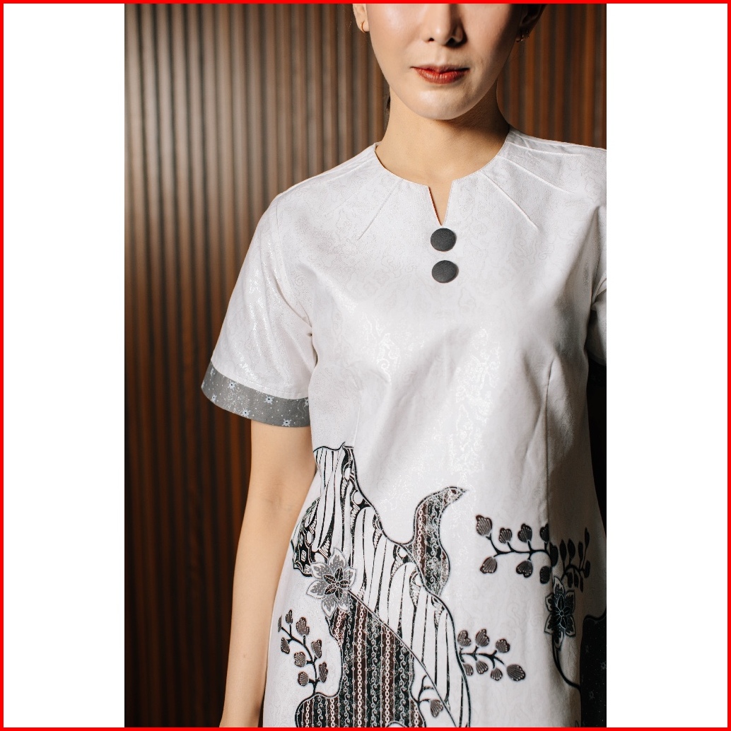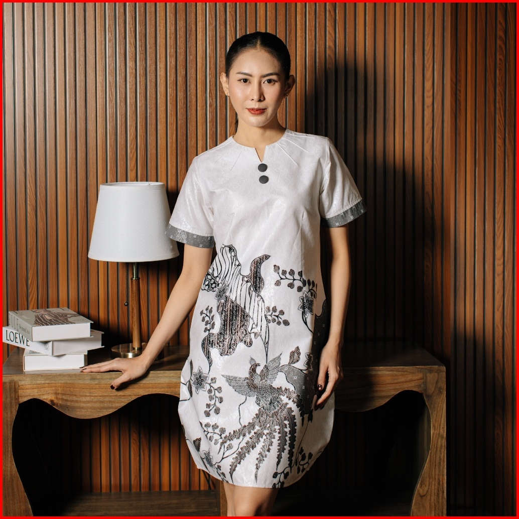Avana By Adyatma Lianra White Dress Batik Wanita Tricot Katun Foil