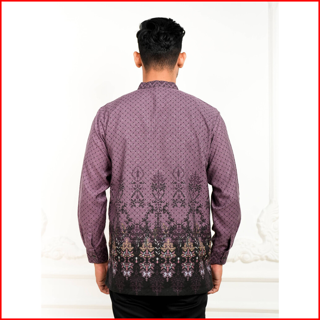 Adyatma Pria Gardenia Burgundy Kemeja Batik Koko Furing Pria Lengan Panjang Regular Fit