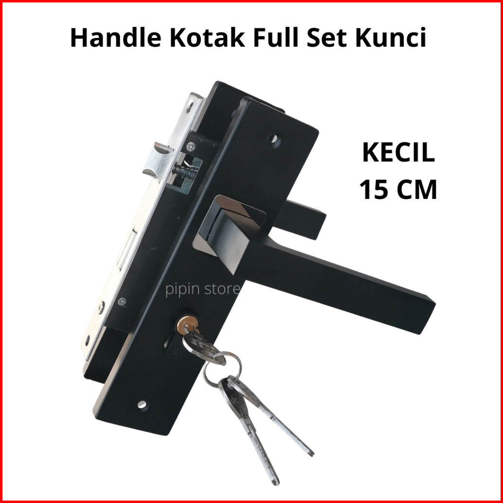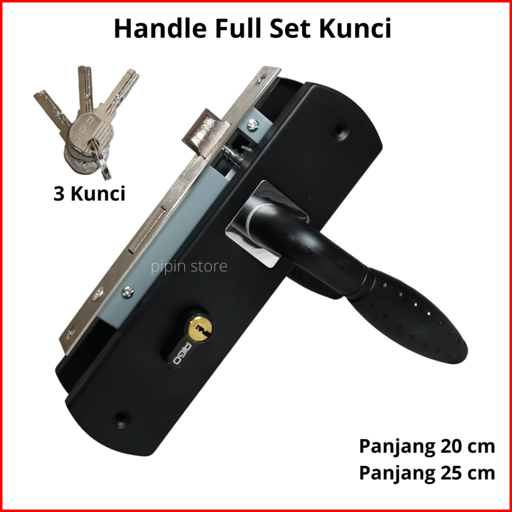 Gagang Kunci Pintu Hitam 20 Cm Set Handle Pintu Komplit Ukuran Tanggung Besar 25 Cm Bulat Kotak Full Black