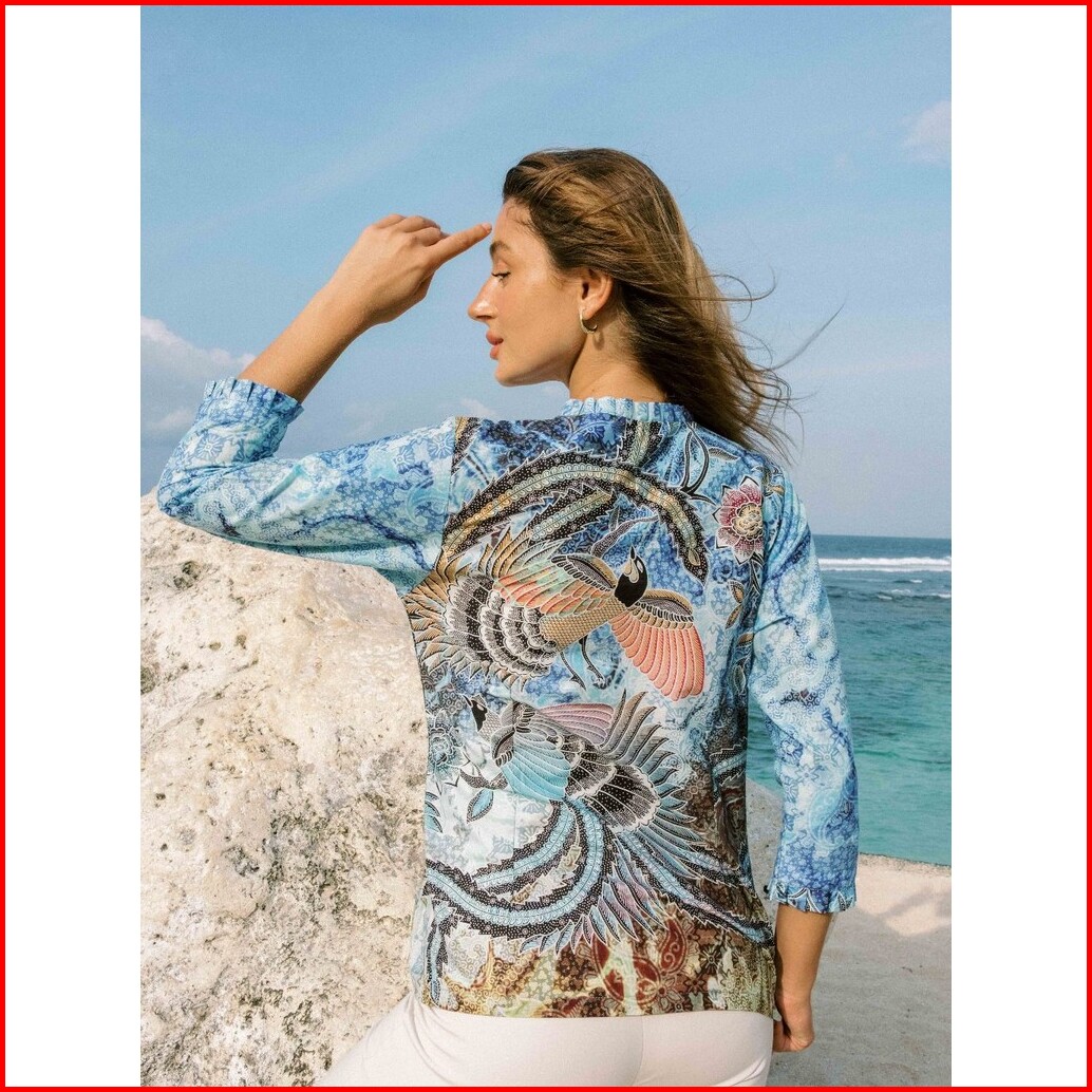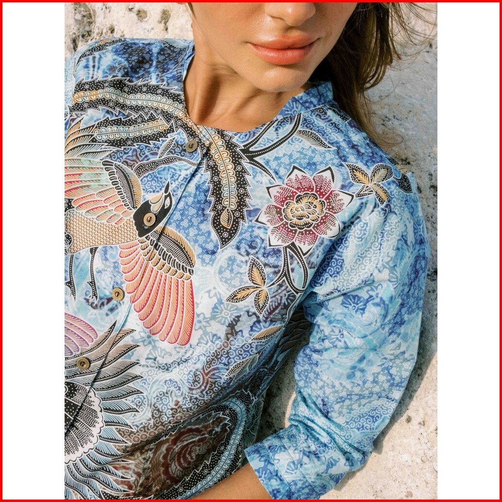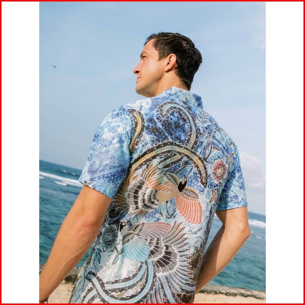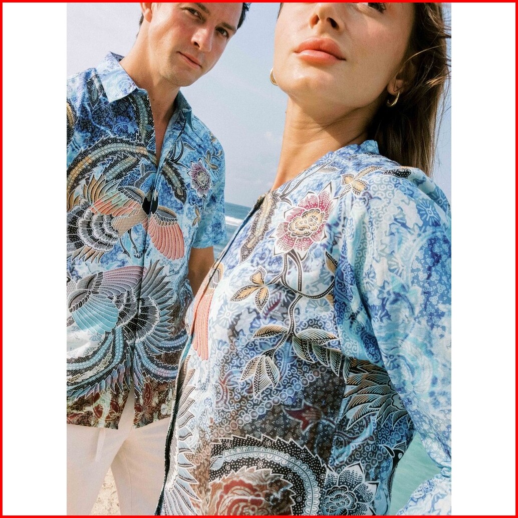 Batik Adyatma Sarimbit Set Couple Naraya Blue - Kemeja Slim Fit Lengan Pendek Blouse Digital Print