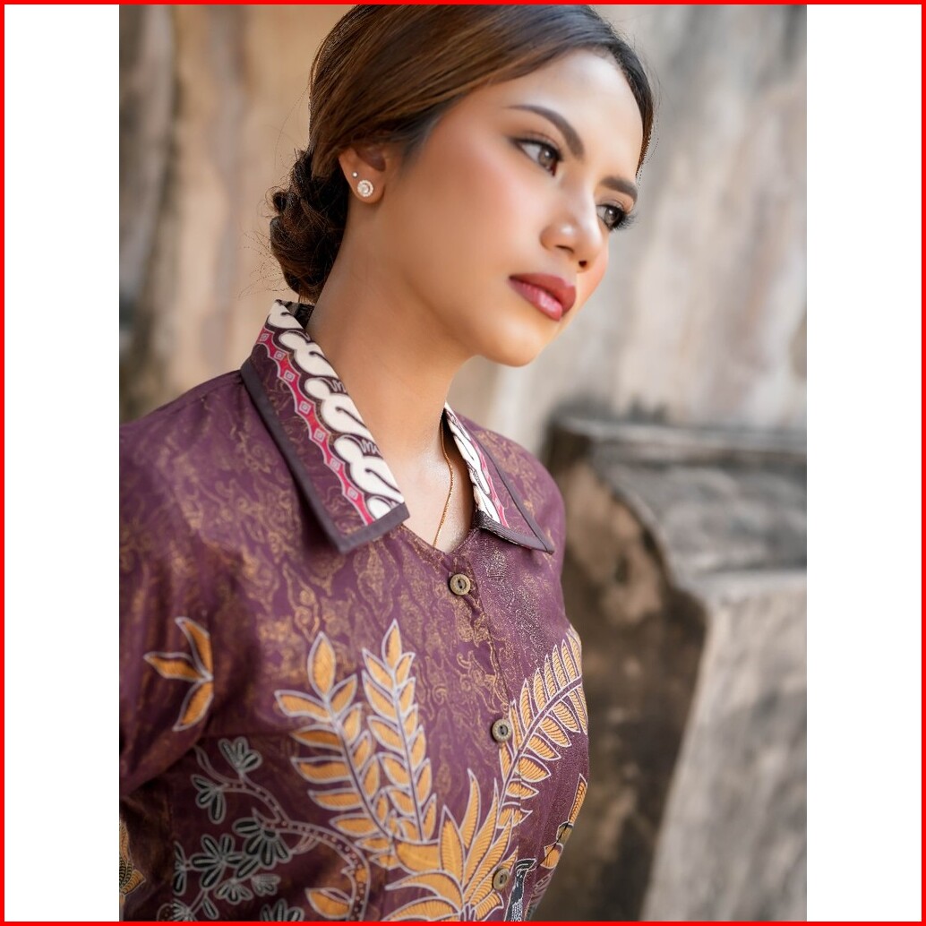 Adyatma Kalingga Brown Blouse Batik Wanita Katun Foil
