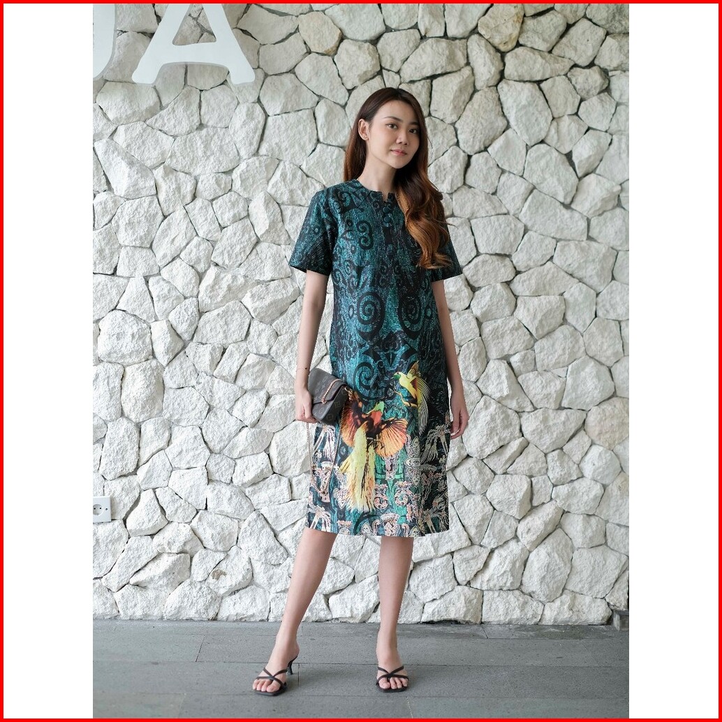 Batik Adyatma Wanita Amala Green Dress Digital Print