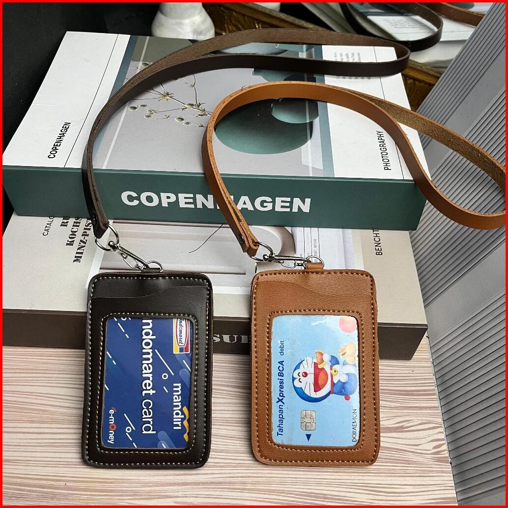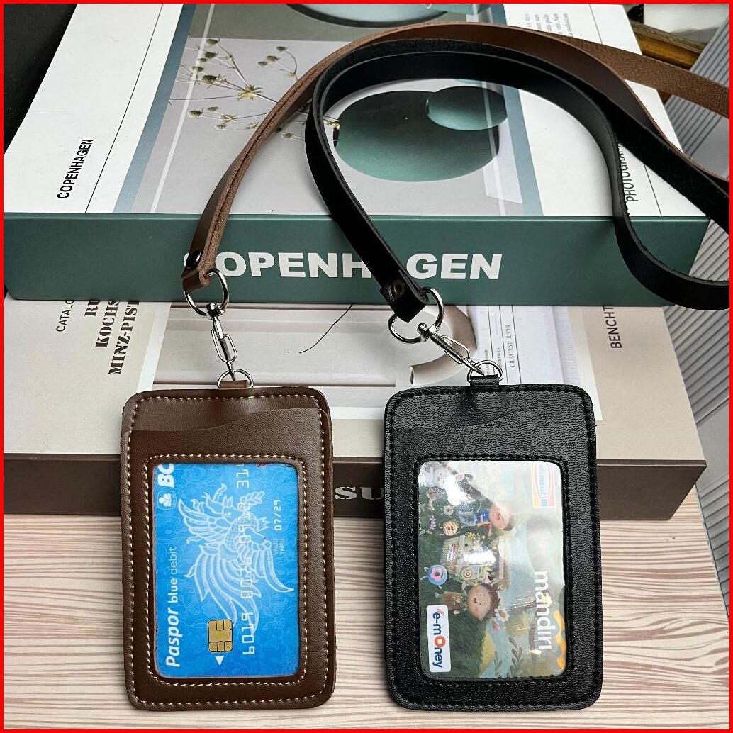 Id Card Holder Kulit Nametag Lanyard 3 Ruang Tempat Kartu Lanyard Kulit