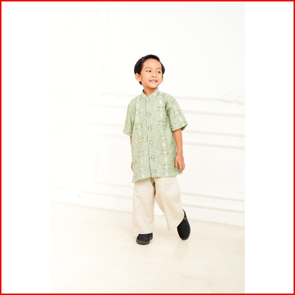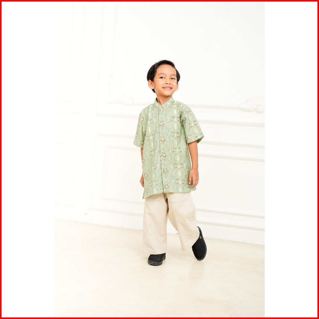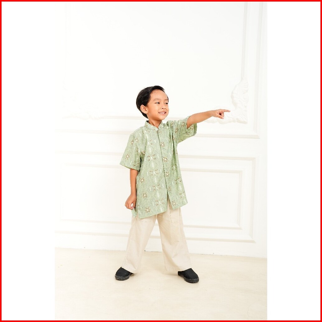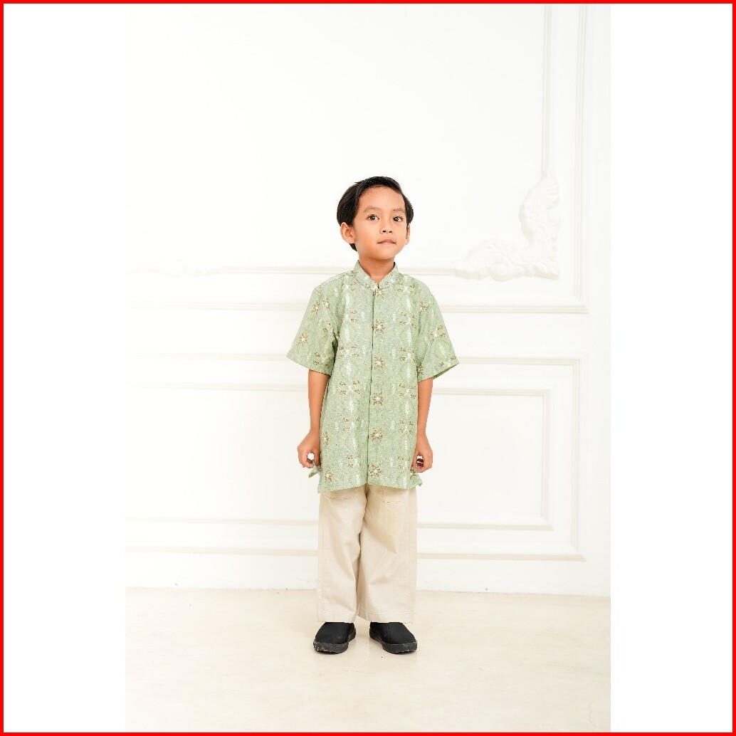Adyatma Pria Arunika Sage Green Kemeja Batik Koko Furing Anak Lengan Pendek Regular Fit