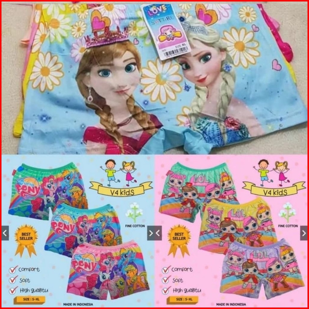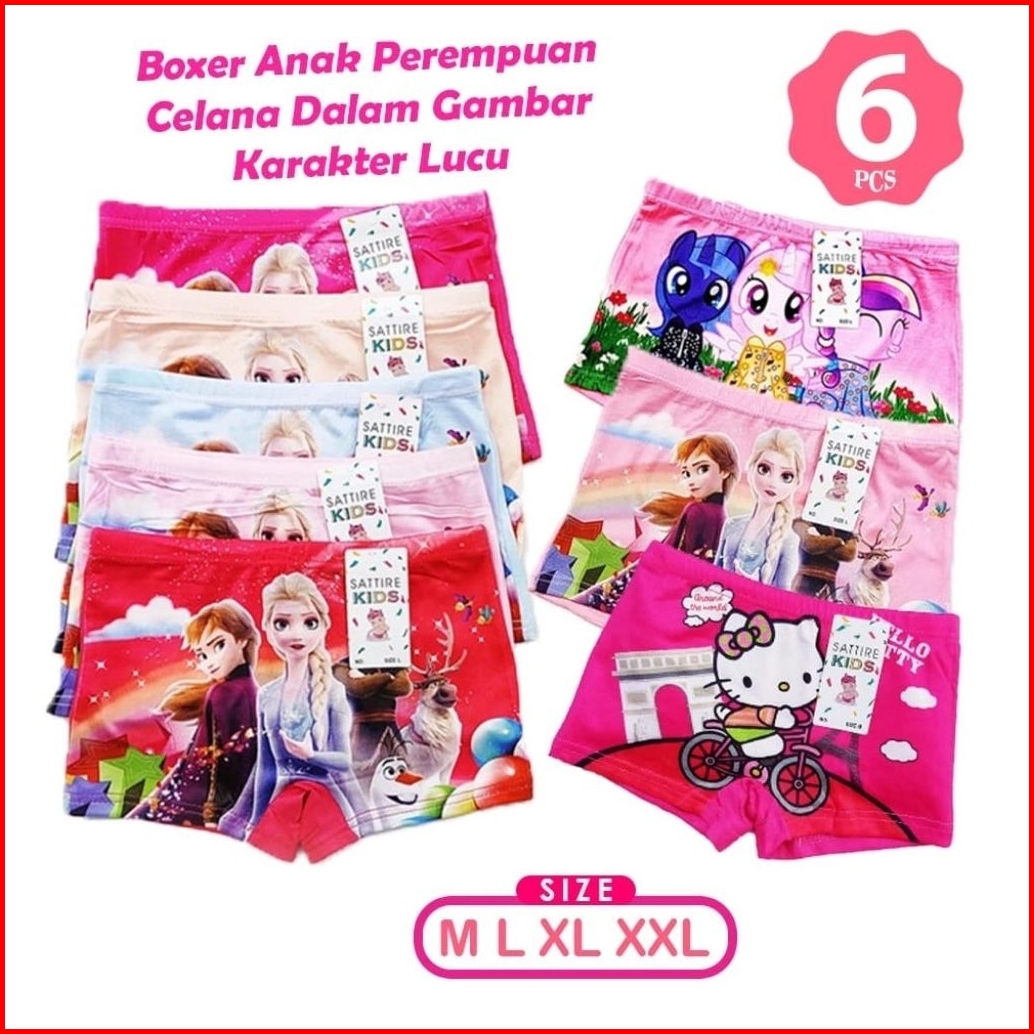 Terlaris 3 Pcs Celana Dalam Boxer Anak Perempuan Motif Karakter Anak Cewe