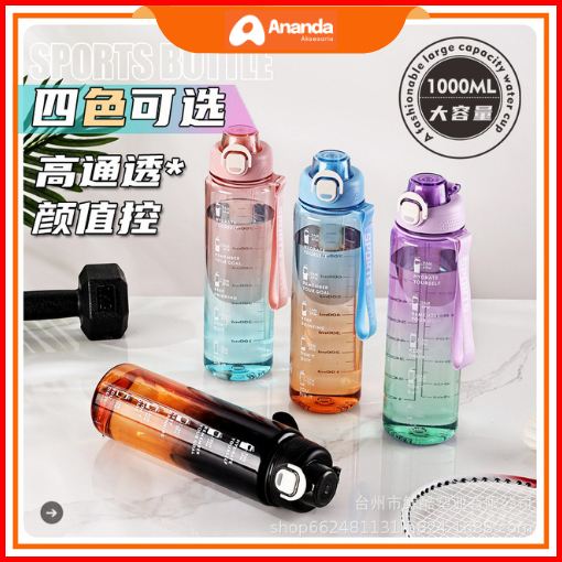 Botol Minum Bening 1 Liter Anti Bocor Sedotan Flip Sporty Untuk Anak Dewasa