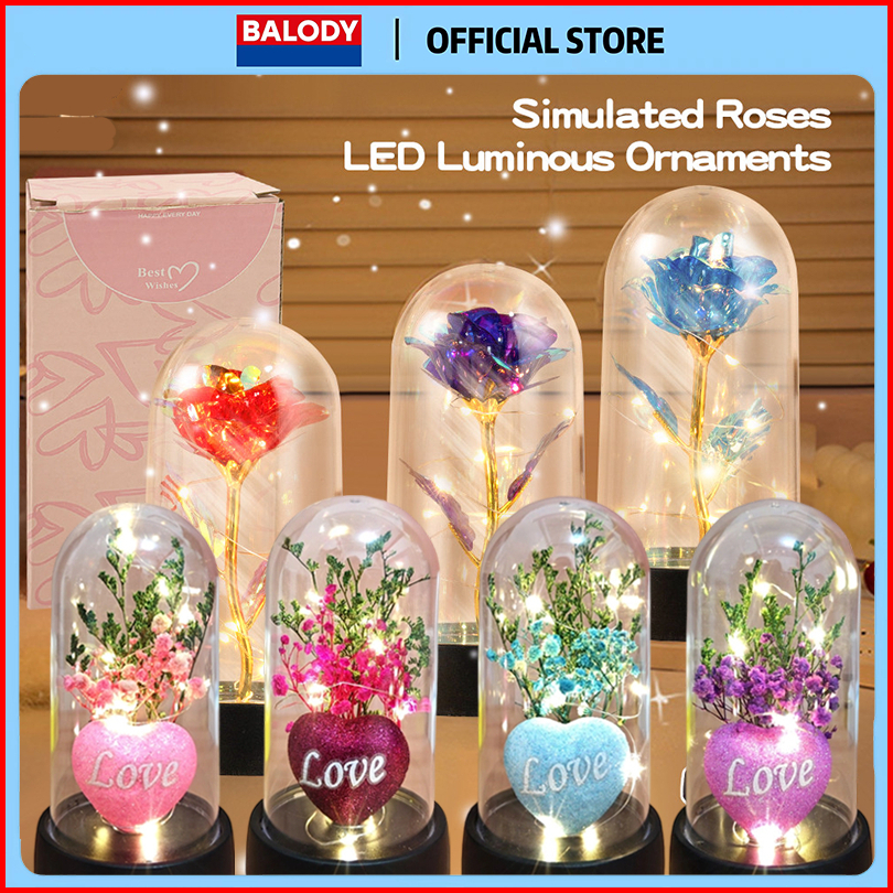 Balody Mawar Bunga Love Lampu Led Dekorasi Plastik Beauty And The Beast Rose Valentine Hadiah
