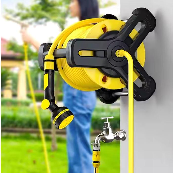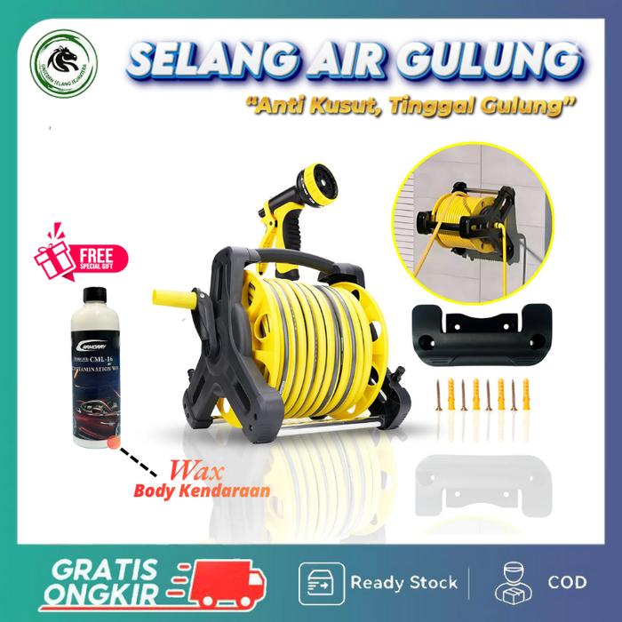 SELANG AIR GULUNGAN TAMAN FULL SET 14 & 25 METER ANTI KUSUT GARDEN HOSE REEL TERLARIS - 14 METER, + PENGAIT TEMBOK