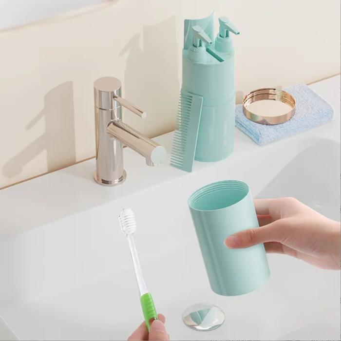 TRAVEL TOILETRIES KIT 8 IN 1 PORTABLE PRAKTIS - PERLENGKAPAN KAMAR MANDI PORTABEL PUTIH - NEW PINK