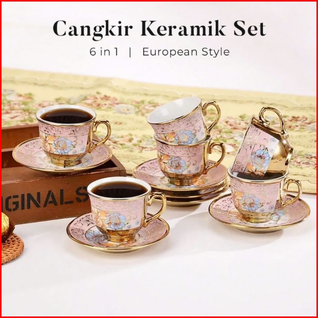 Tatakan Mini Set 6 In 1 Piring Lepek 12pcs Cups Cangkir Teko Keramik Alat Saji Teh Kopi Dapur Hampers Hadiah Gift Box Ka
