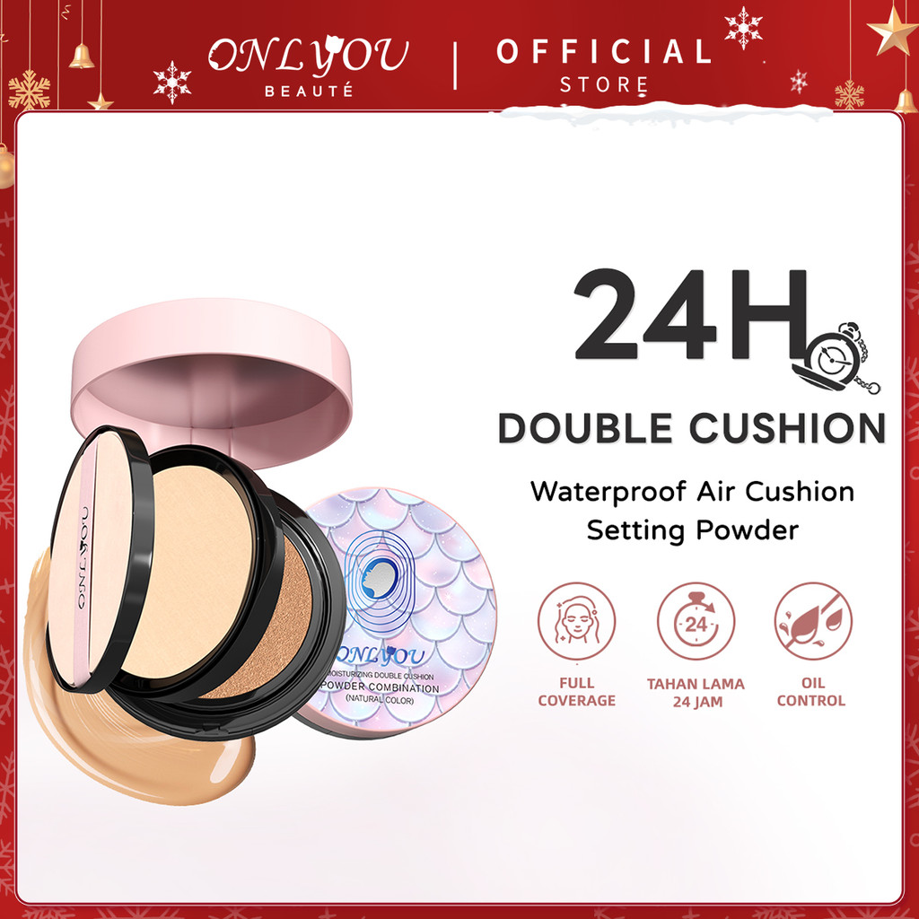 Onlyou Double Air Cushion - Matte Cushion Foundation Dan Setting Powder - Full Coverage 24H Long-Lasting Glowing Waterpr