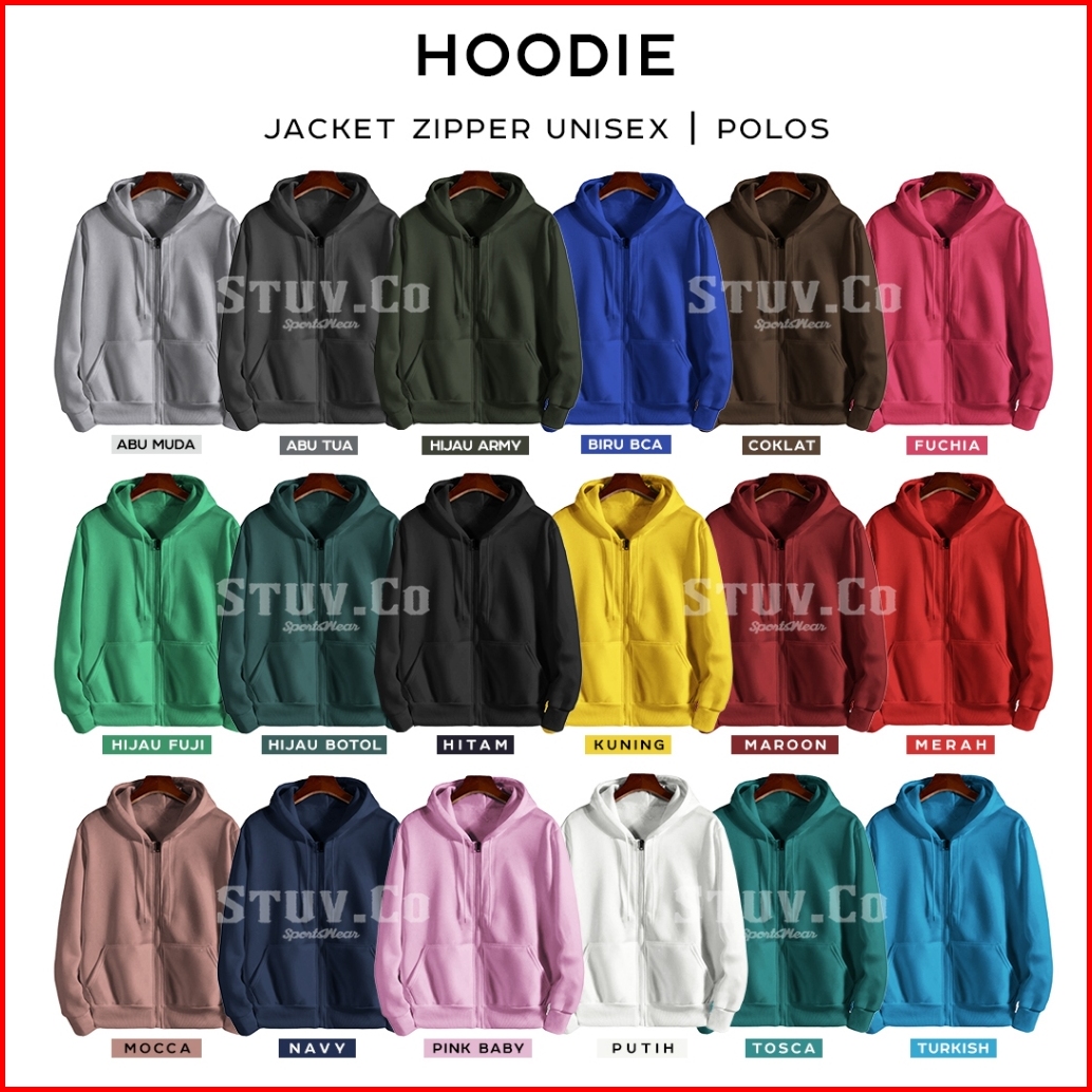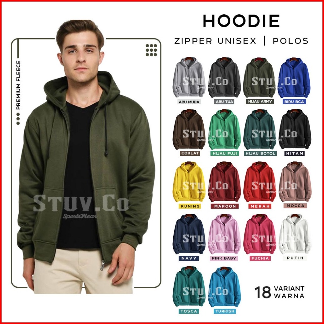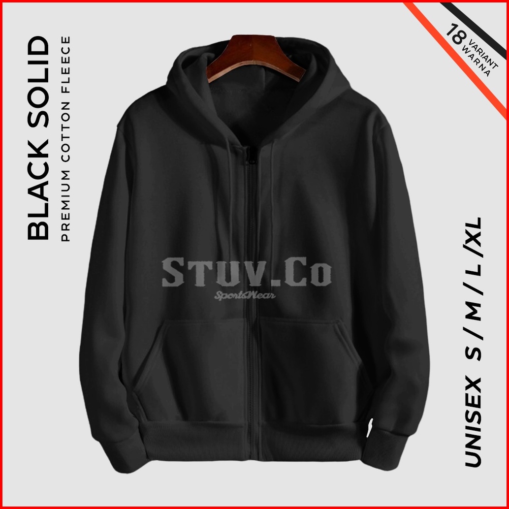 Jaket Sweater Polos Hoodie Zipper Resleting Hitam M L Xl Pria Wanita