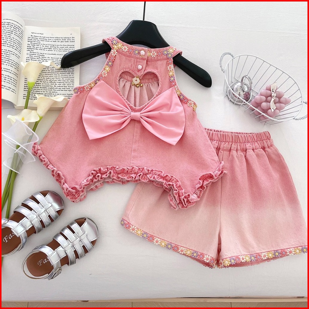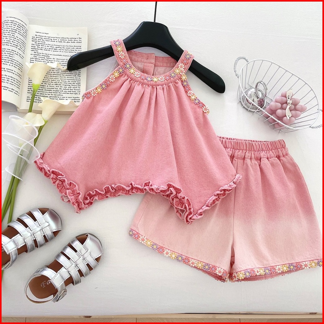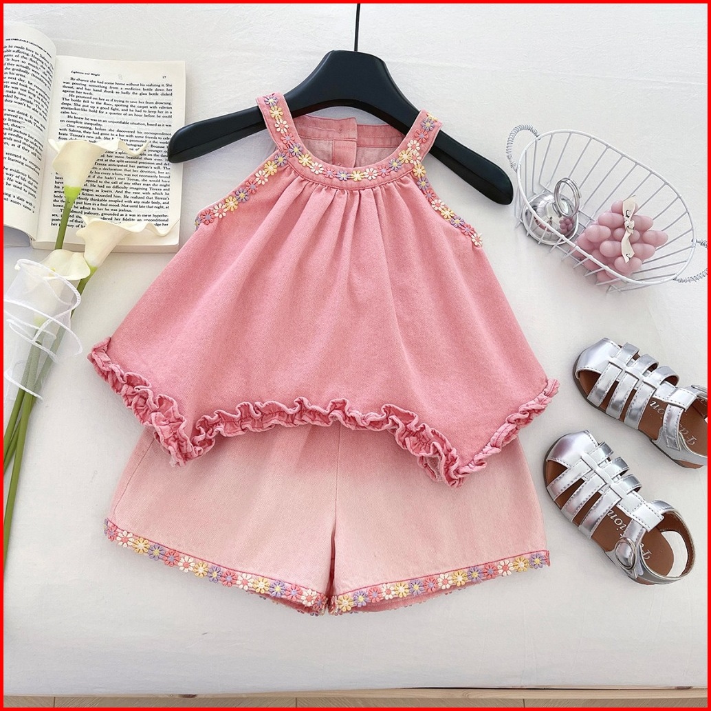 Ryuta Setelan Jeans Anak Perempuan 1-10 Tahun Baju Jeans Pink Anak