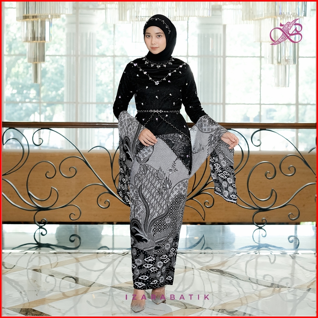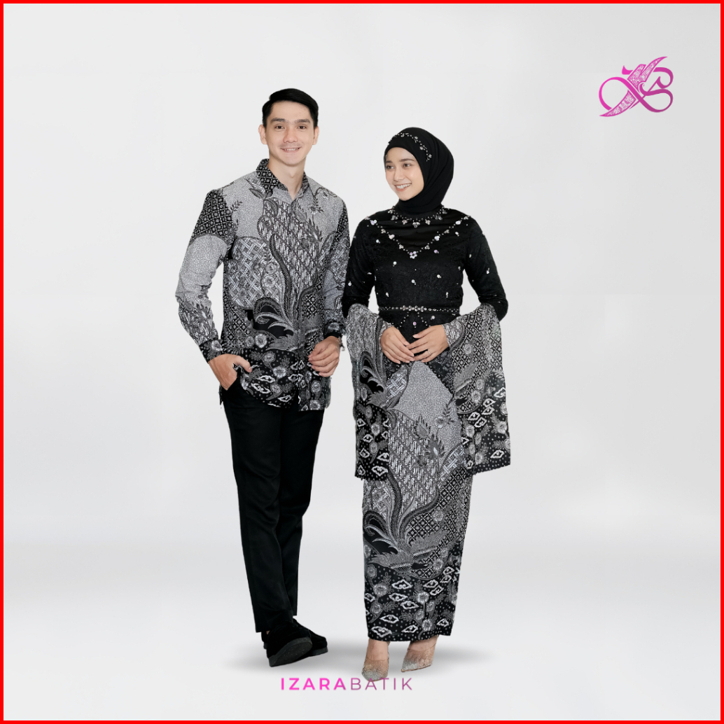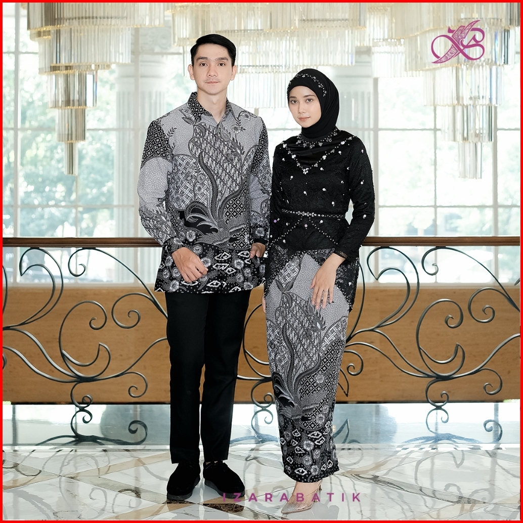 Izarabatik - Keyla Hitam Set Kebaya Batik Modern Couple Wisuda Lamaran Full Payet Tunangan Kondangan Bridesmaid