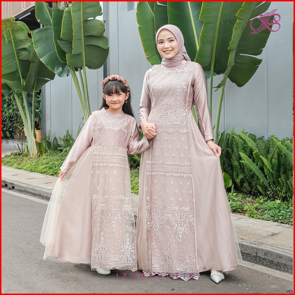 Izarabatik - Family Set Dress Tifana Latte Raya Collection Setelan Baju Couple Sarimbit Keluarga Muslim Lebaran