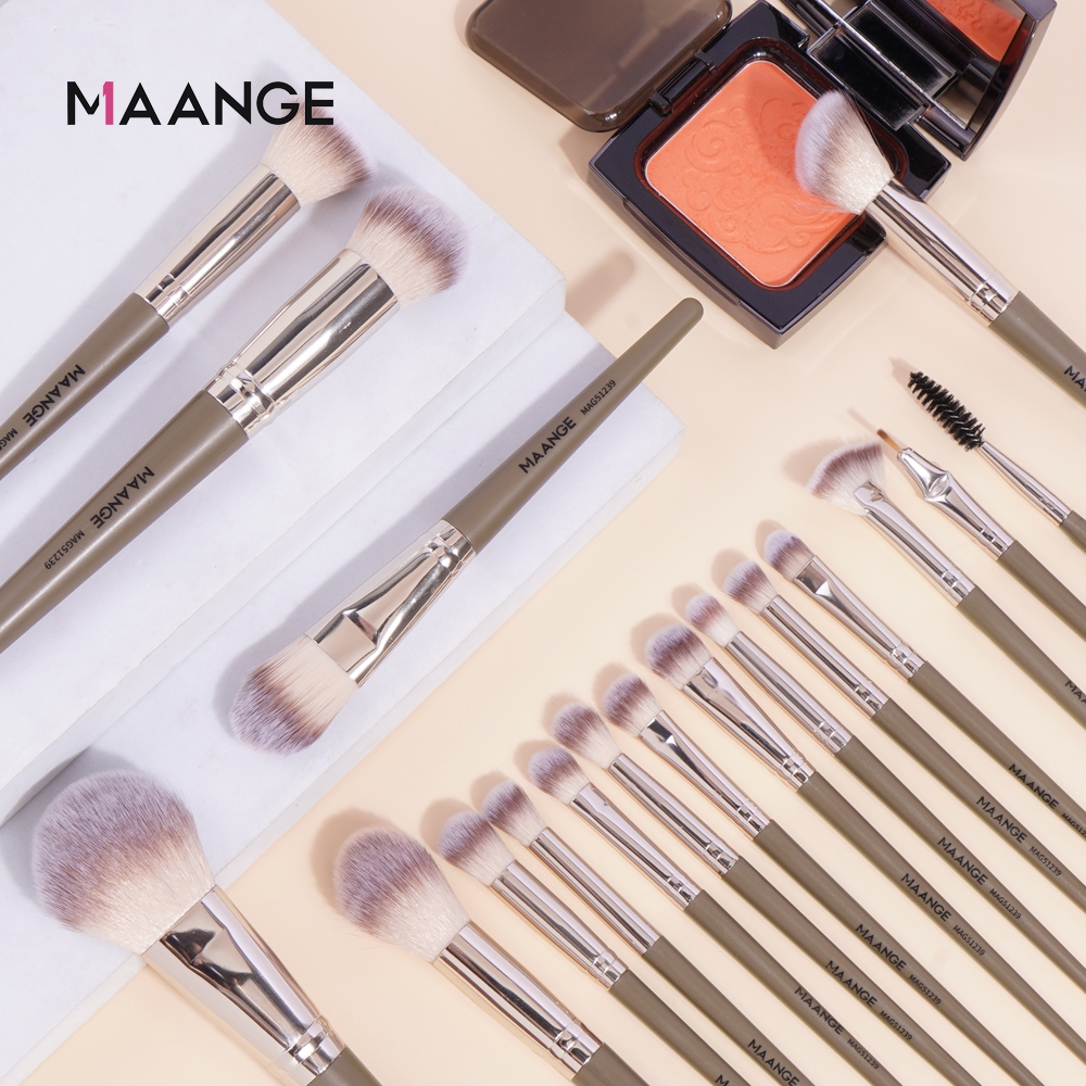Maange 18Pcs Premium Kuas Make Up Brush + 16Pcs Spons Make Up Set Lembut Alat Kecantikan 51239