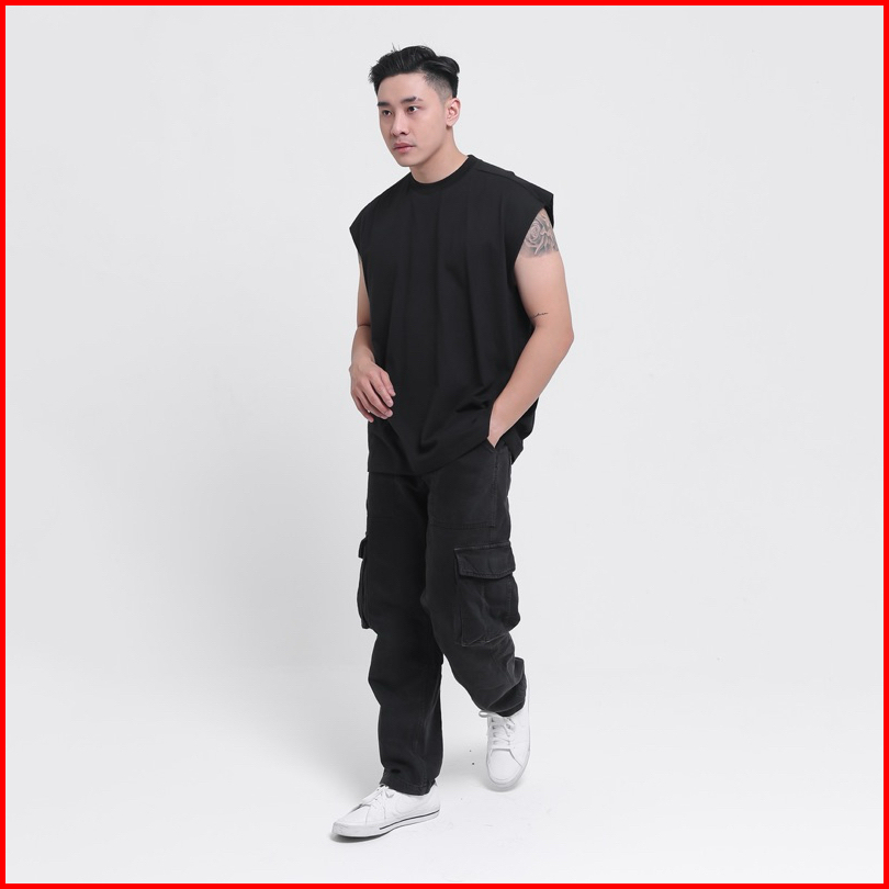Heyplain Kaos Tanktop Hitam Oversized - Cotton Combed 24s