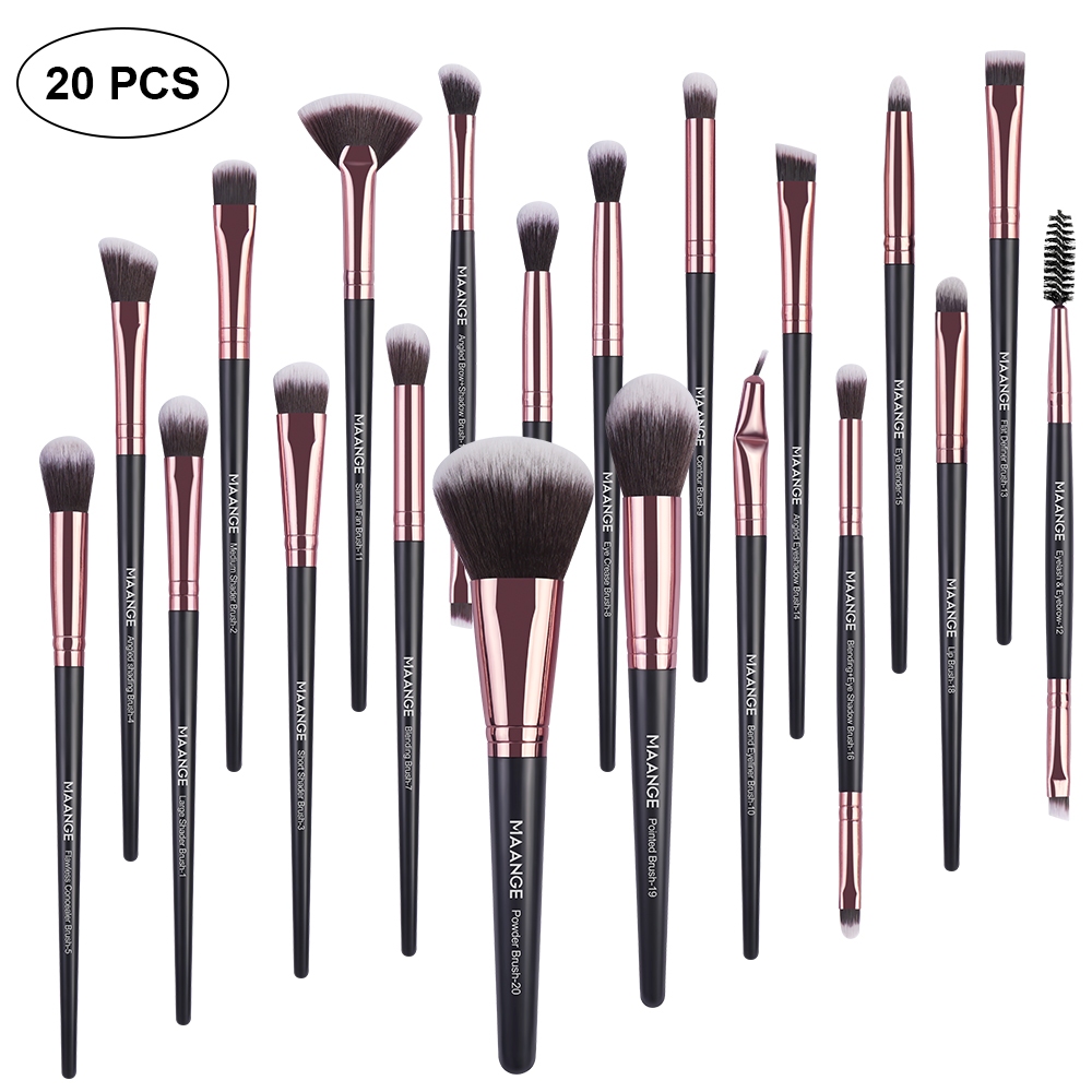 Maange 20 Pcs Exclusive Brush Set Brush Make Up Profesional Alat Rias Wajah Mata Pegangan Kayu 5748