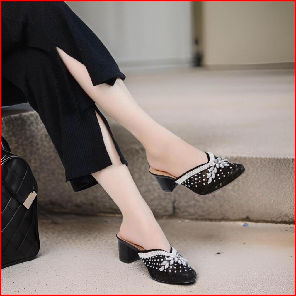 Herdian Rtwo 31 Sandal Pesta Wanita Pengantin 5cm Brukat Glitter Mewah Elegan Mule