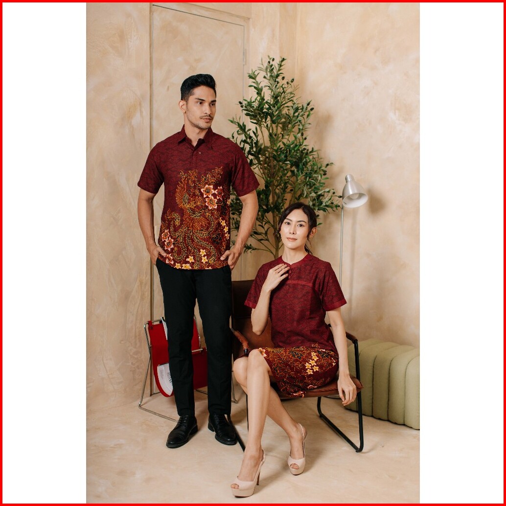 Adyatma Anvaya Maroon Sarimbit Set Couple Kemeja Batik Slim Fit - Dress Batik Wanita Katun