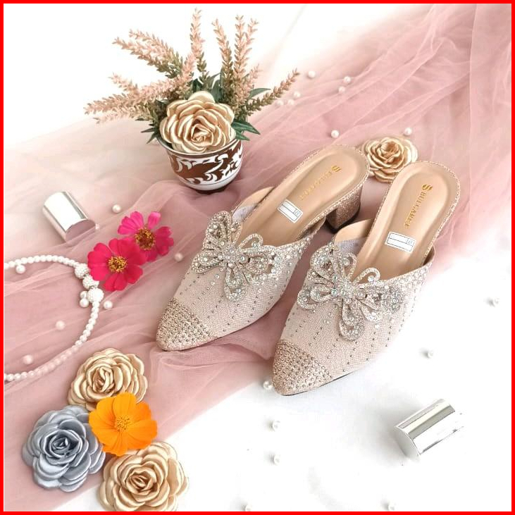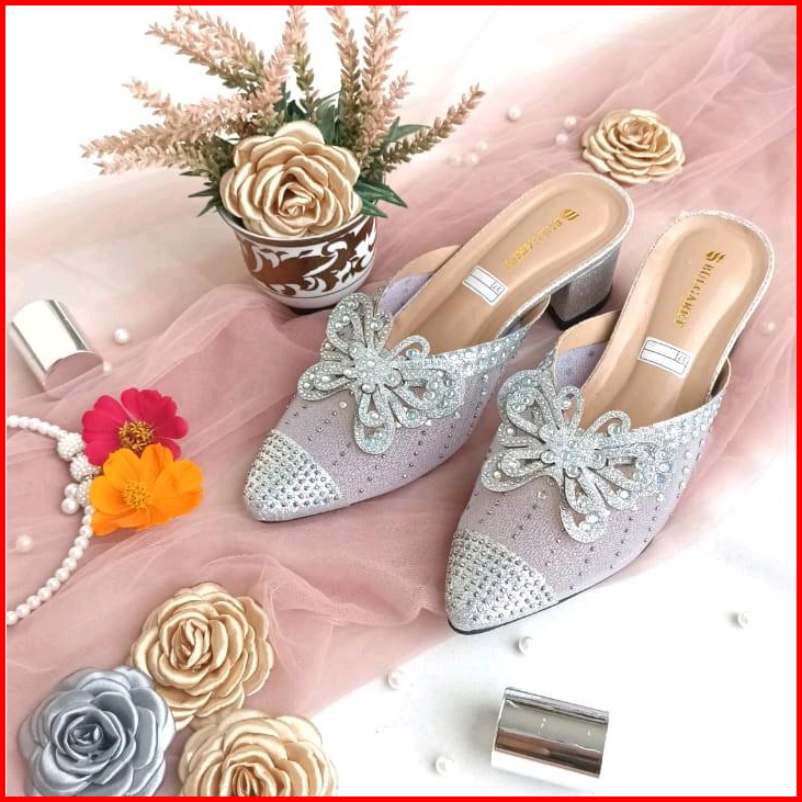 Heels Pesta Bridal Pita Kupu-kupu Zn 06 Sol Karet