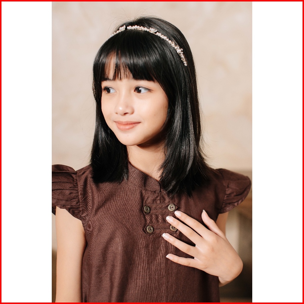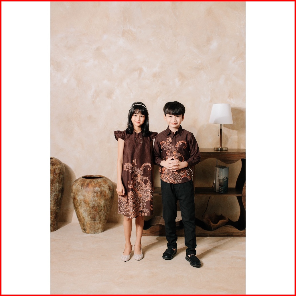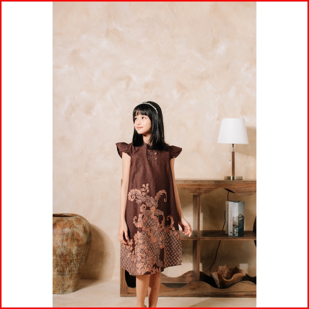 Adyatma Kavindra Mahogany Brown Dress Batik Anak Wanita Katun Lengan Pendek