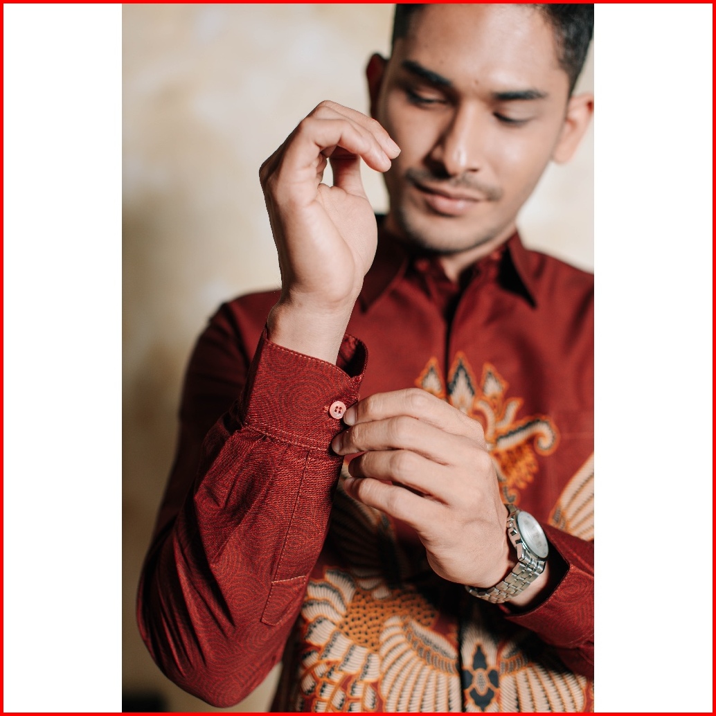 Avana By Adyatma Avira Terracotta Red Kemeja Batik Slim Fit Tricot Pria Katun