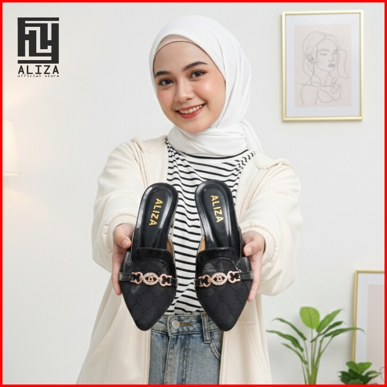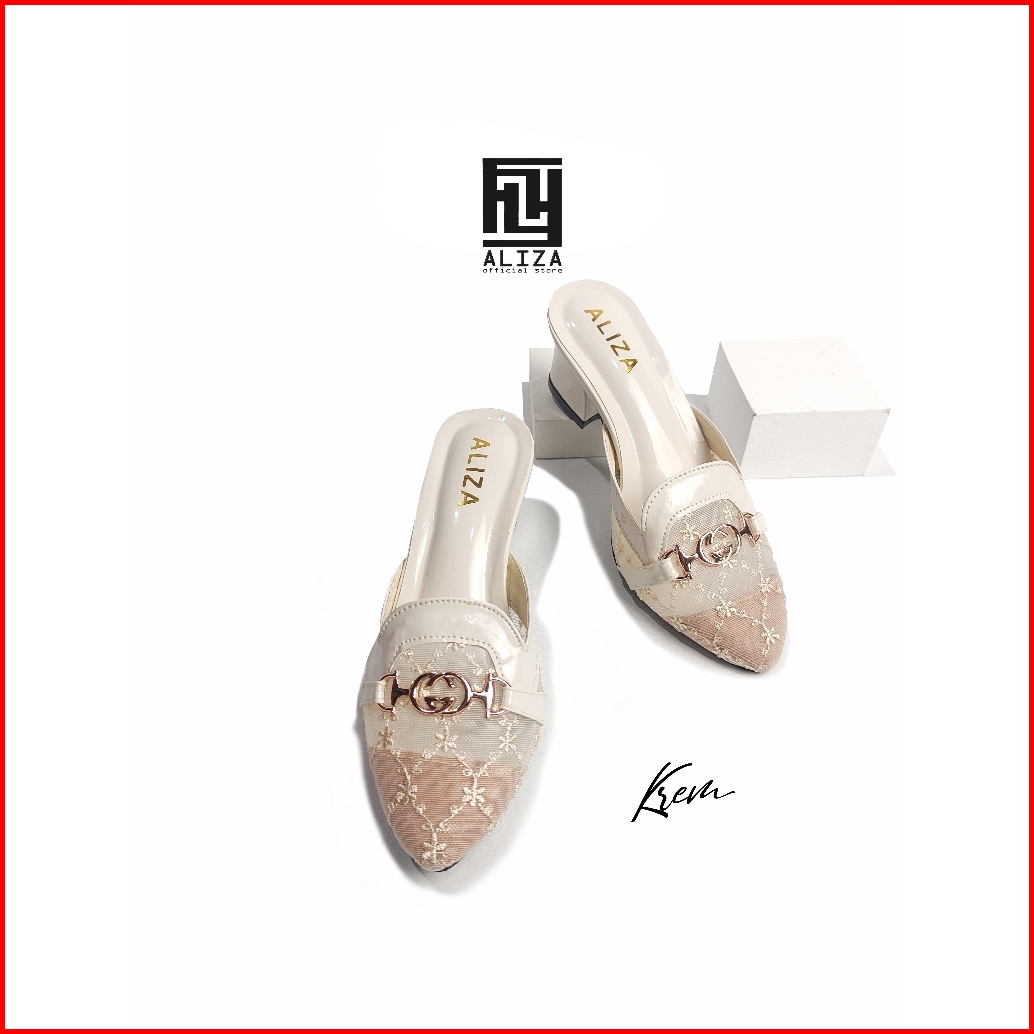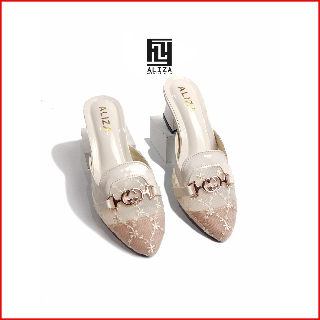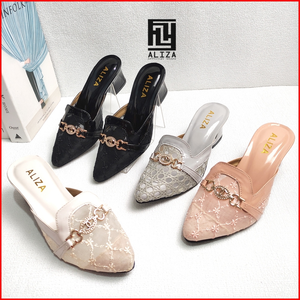 Sandal Heels Hak Tahu 5cm Alizashoes Jala Ujung Lancip Terbaru