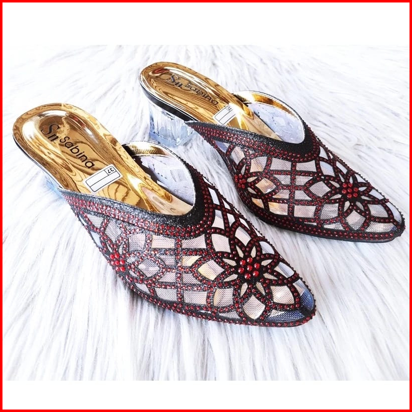 Sandal Sepatu Wanita Hak Kaca Model Jalla Payet Import Sandal Wanita Heels 5cm