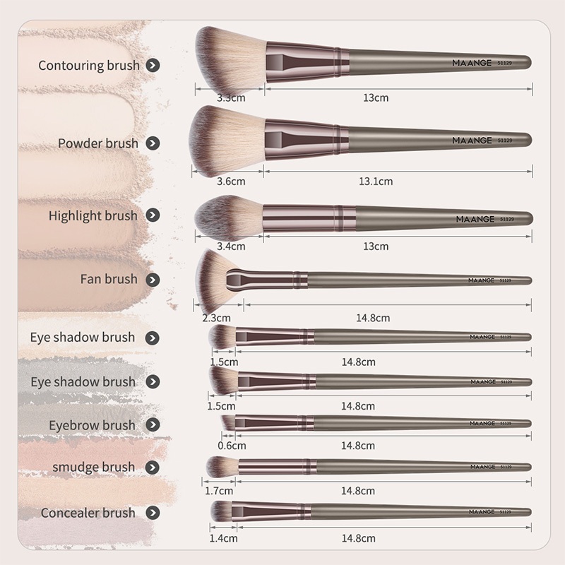 Maange 9 Pcs/Set Kuas Rias Brush Kit Makeup Pemula Brush Blush Makeup Kuas Multifungsi Beauty Tools