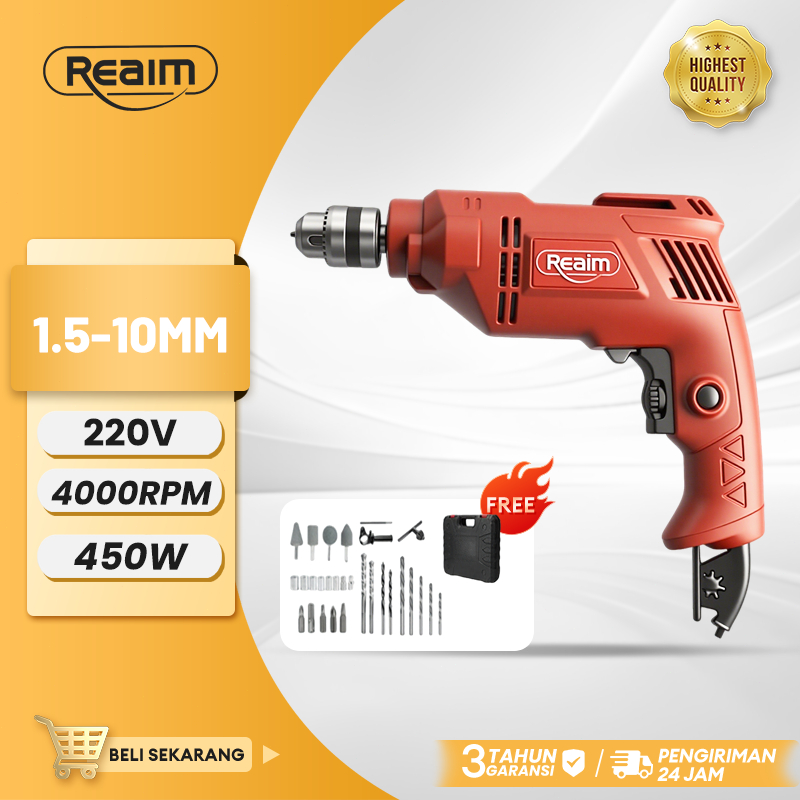 REAIM Mesin bor Bor dampak Impact Drill 10MM Berlaku Untuk Bor Beton Bor Tembok Alat Bor Bor Kayu