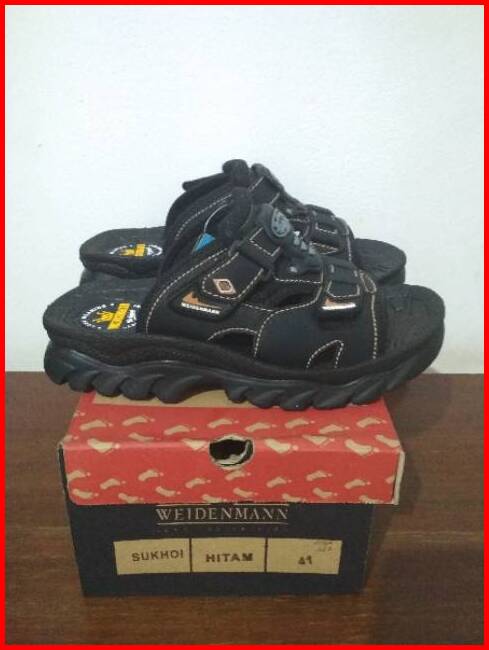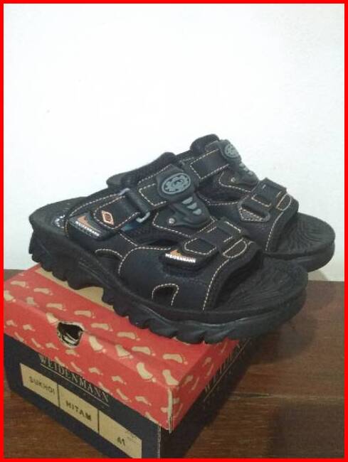 Sandal Cowok Pria Gunung Hiking Weidenmann Sukhoi Sol Tebal Awet Nyaman Di Pakai Black Hitam
