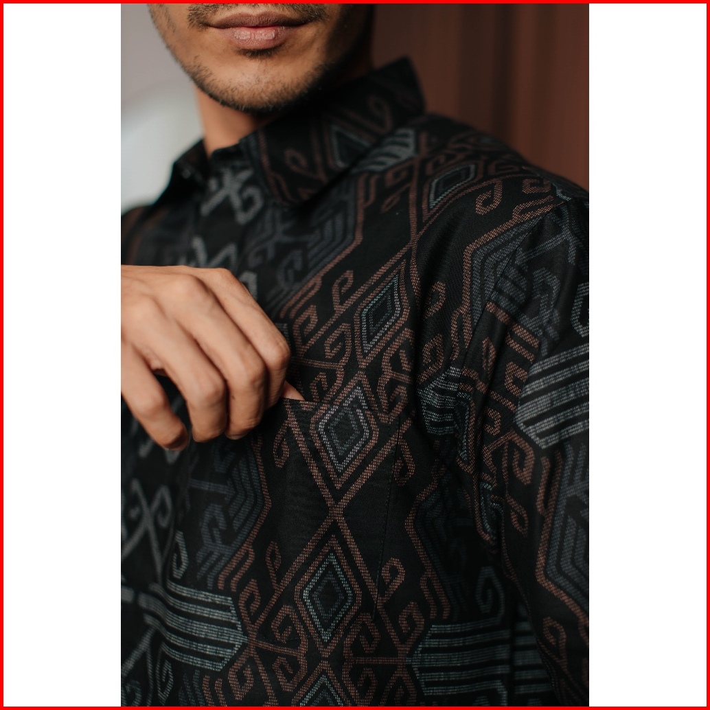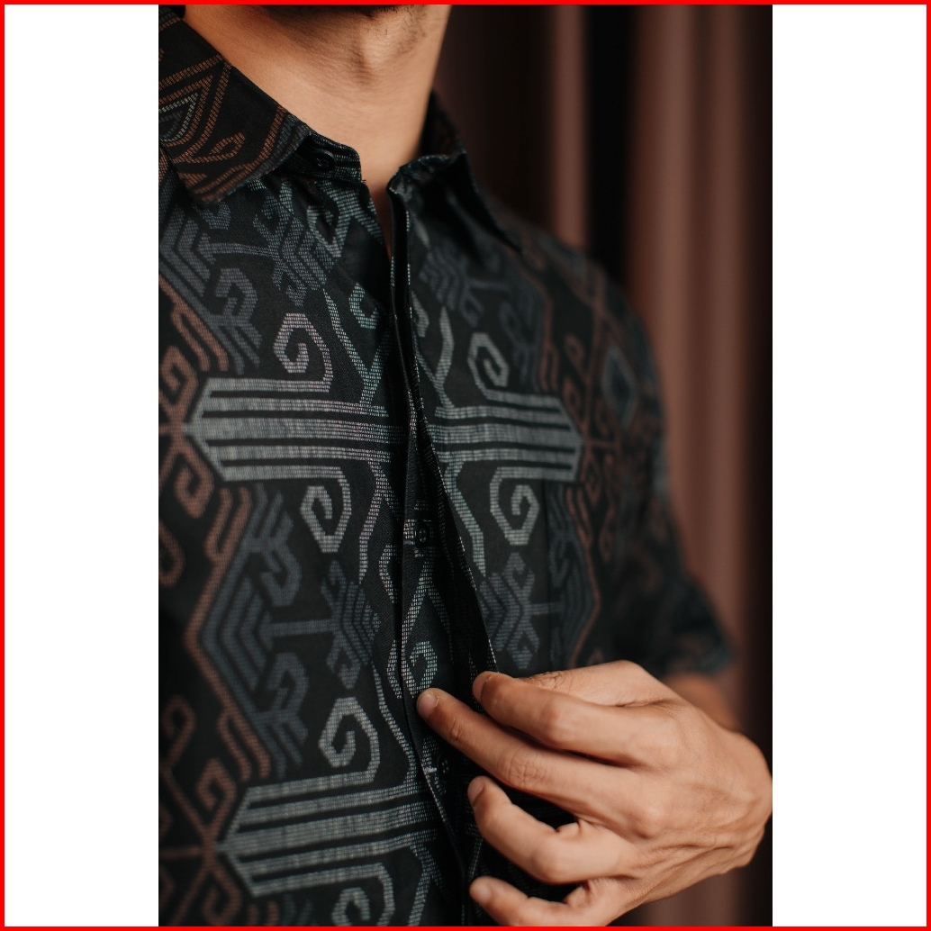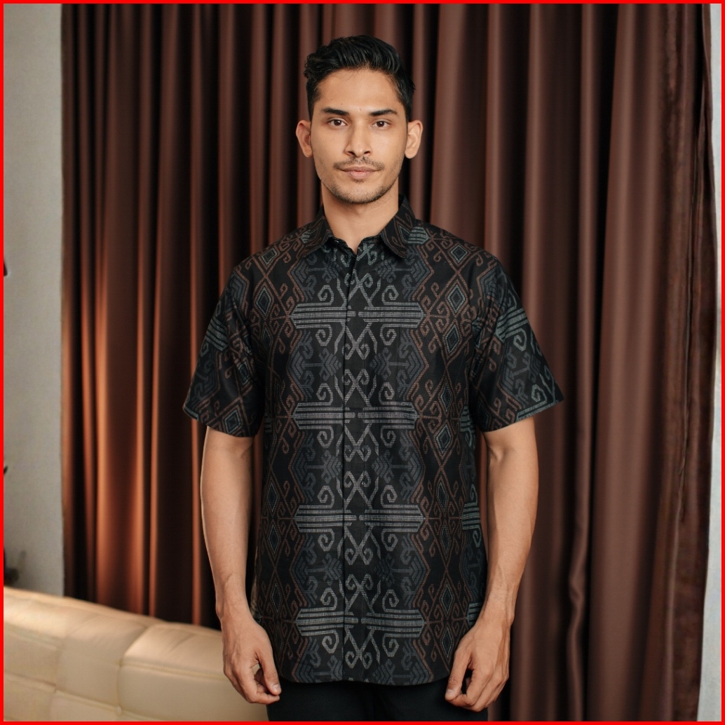 Adyatma Kemeja Batik Pria Slim Fit Vistara Black Katun