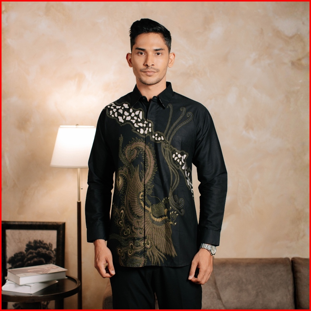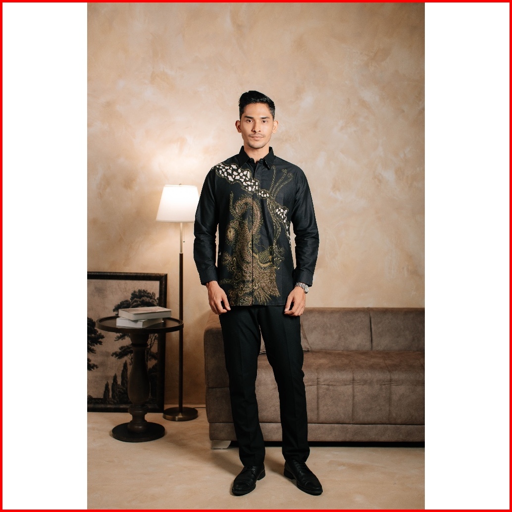 Adyatma Haruna Black Kemeja Batik Pria Slim Fit Katun Lengan Panjang