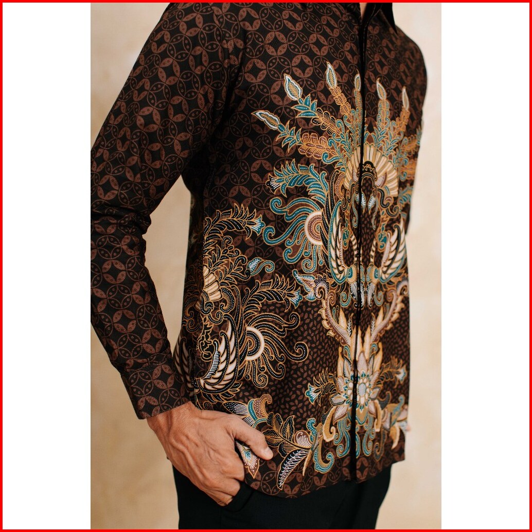 Adyatma Artha Brown Kemeja Batik Pria Slim Fit Lengan Panjang Katun