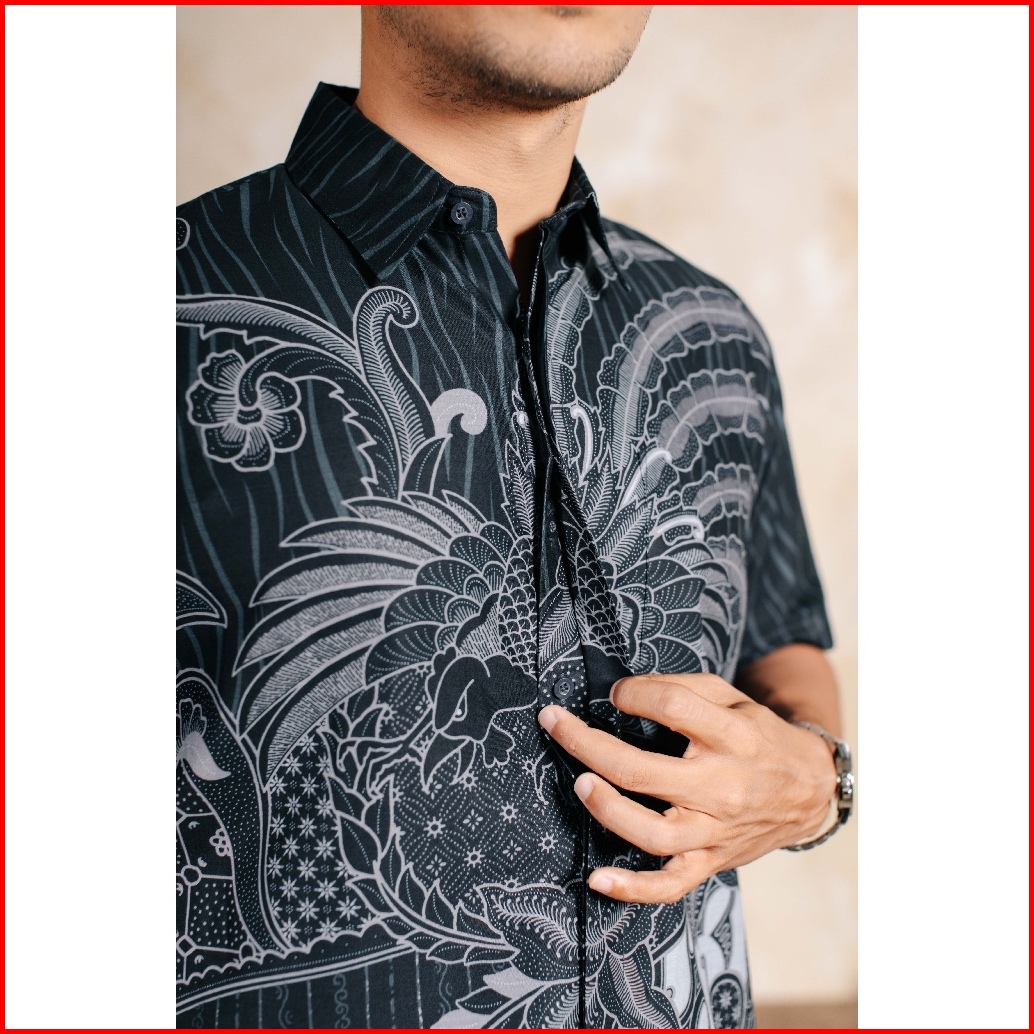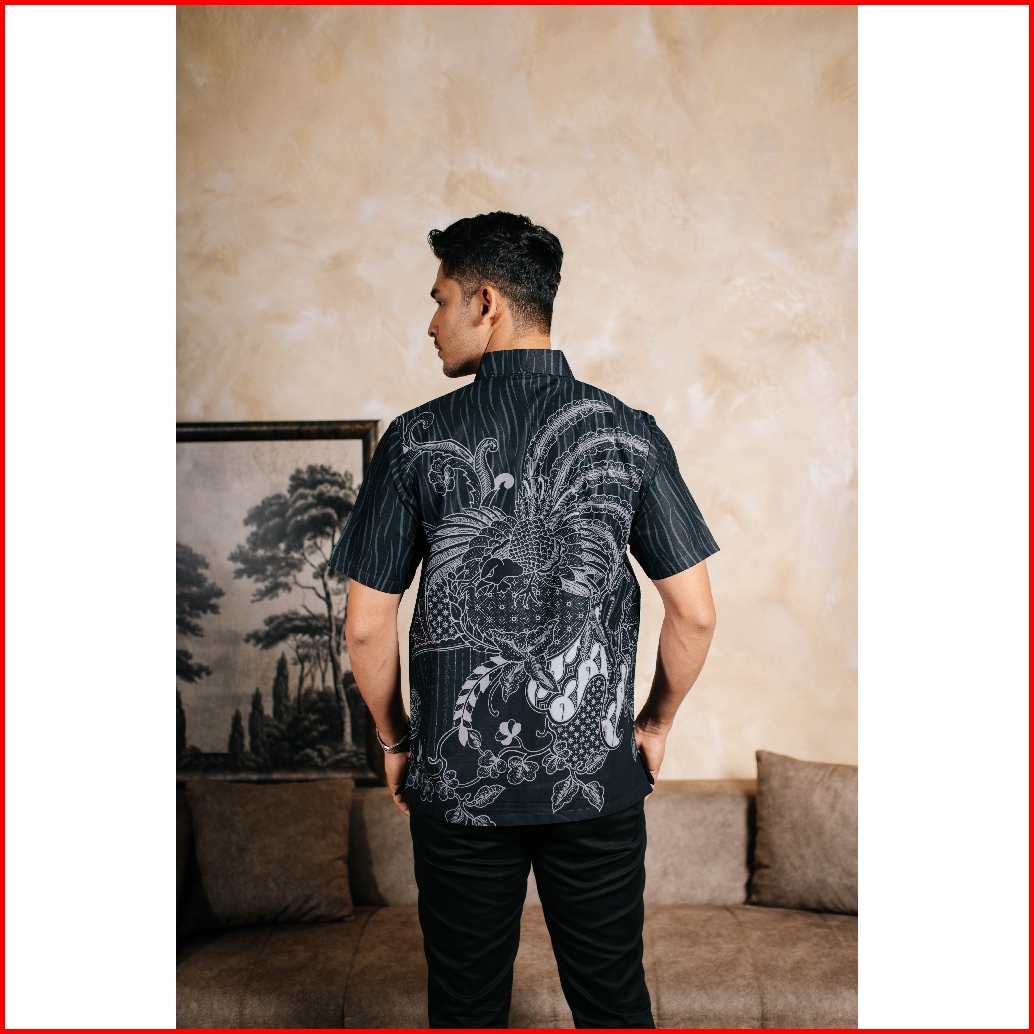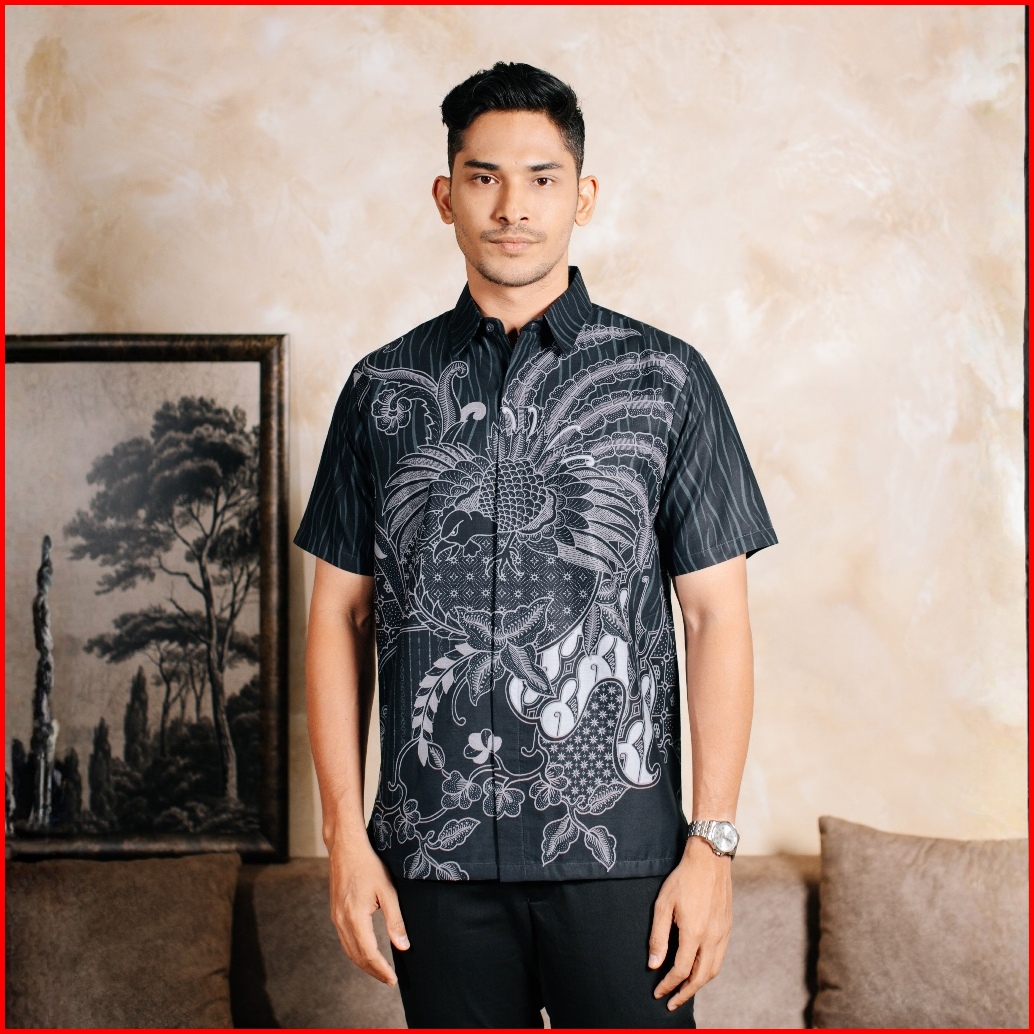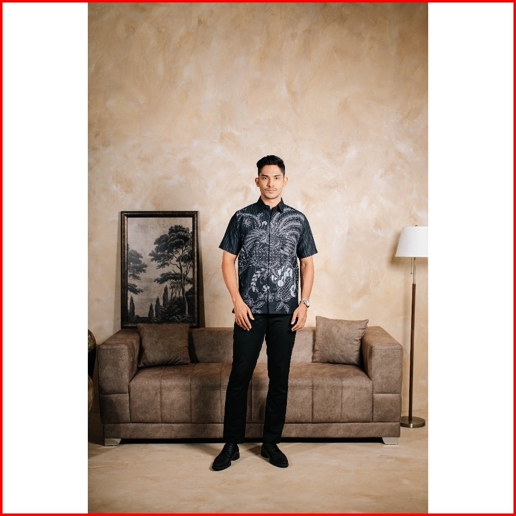 Adyatma Argantara Navy Blue Kemeja Batik Furing Regular Fit Pria Katun Lengan Pendek