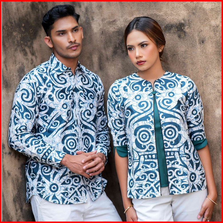 Adyatma Sarimbit Set Couple Batik Kanaka Green - Kemeja Slim Fit Lengan Panjang Blouse Katun
