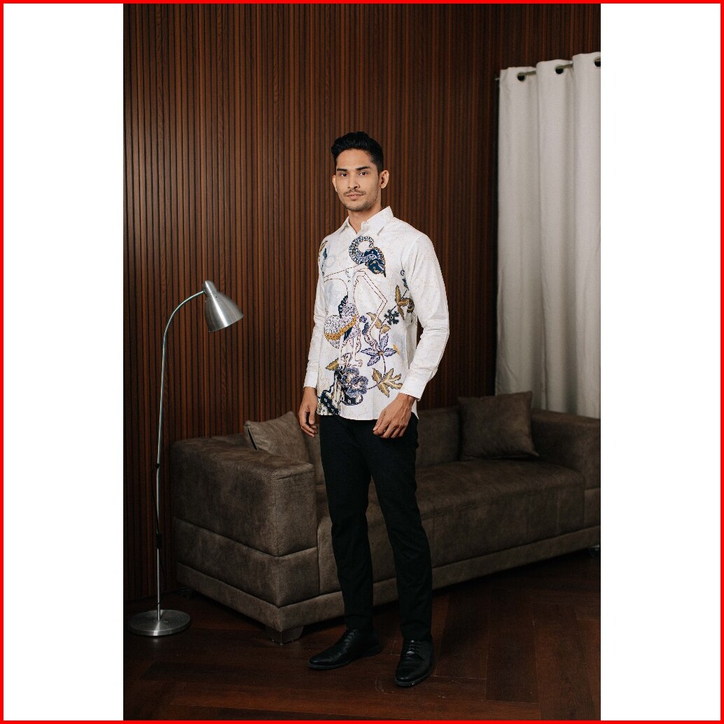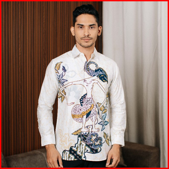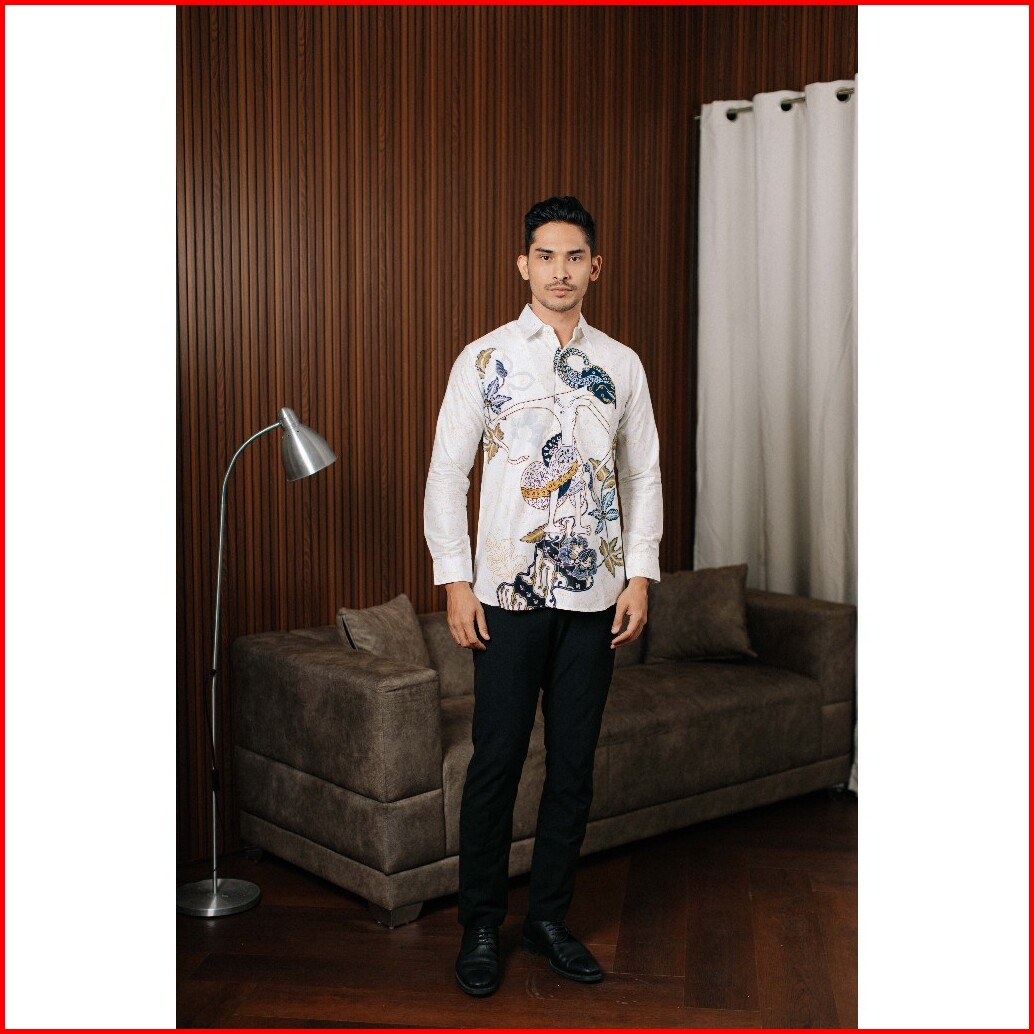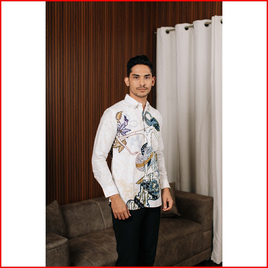 Adyatma Wayang Arjuna White Putih - Kemeja Batik Slim Fit Lengan Panjang Katun