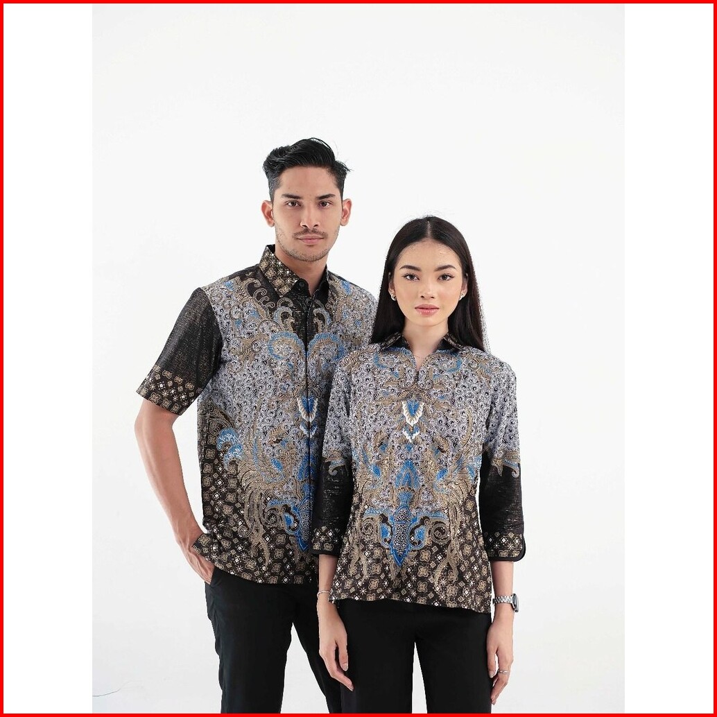 Adyatma Prawira Black Blouse Batik Wanita Katun Foil