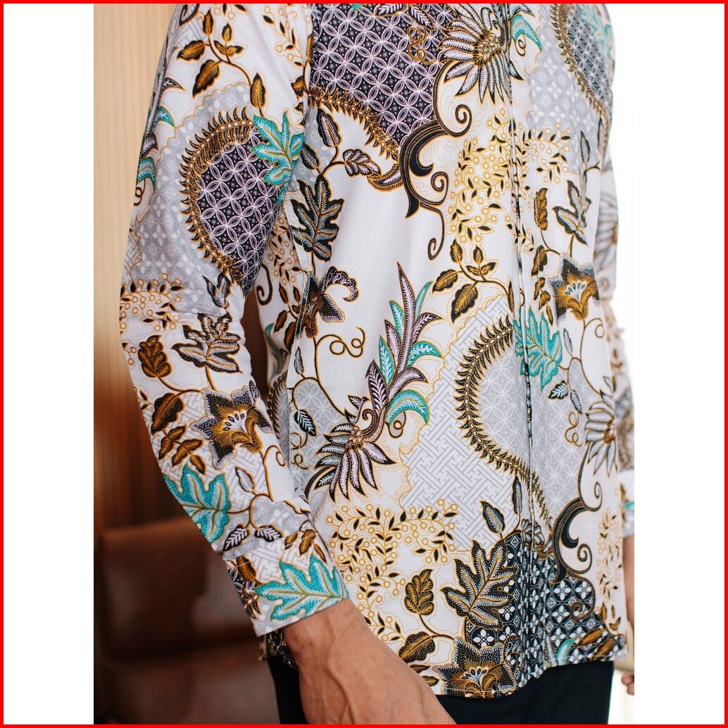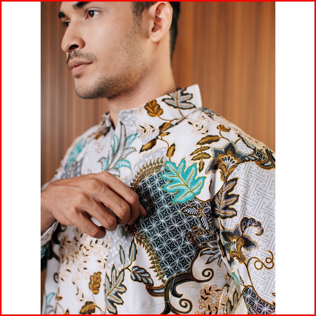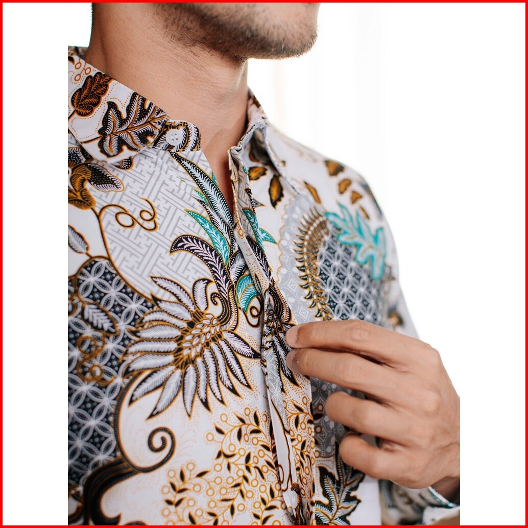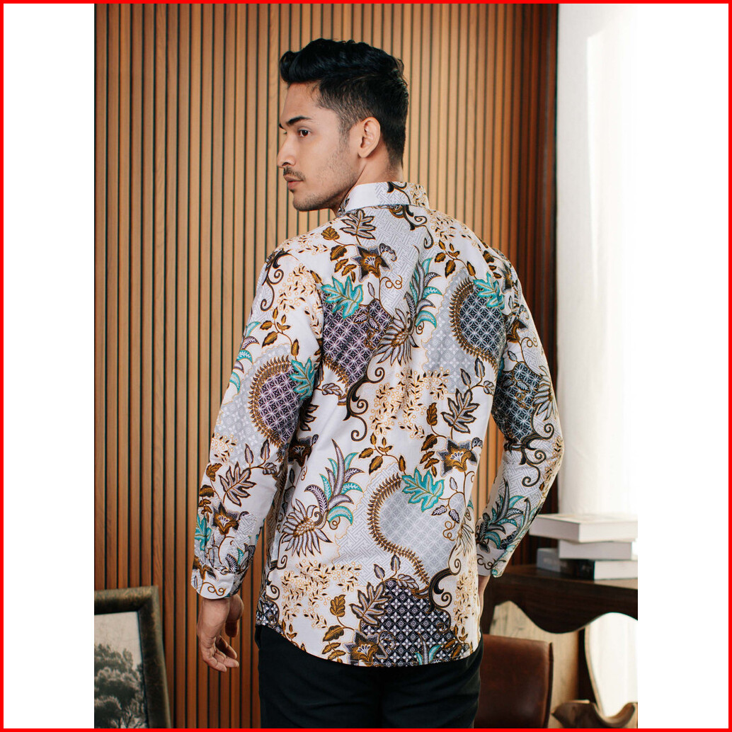 Adyatma Lavina White Putih Kemeja Batik Slim Fit Pria Lengan Panjang Katun