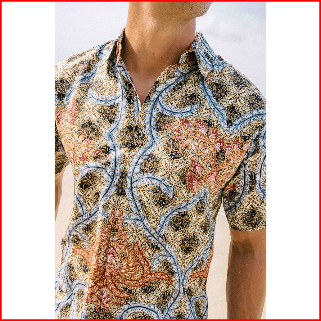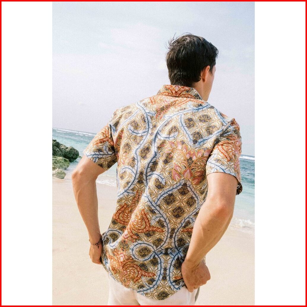 Adyatma Aruna Brown Kemeja Batik Pria Slim Fit Katun Lengan Pendek