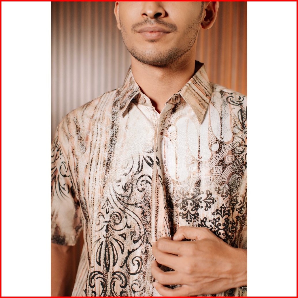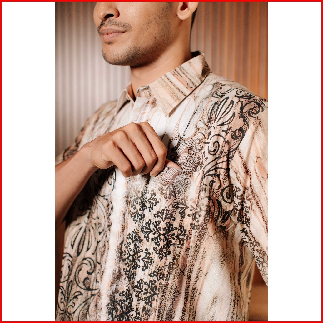 Adyatma Adira Brown Kemeja Batik Furing Regular Fit Lengan Pendek Katun Digital Print