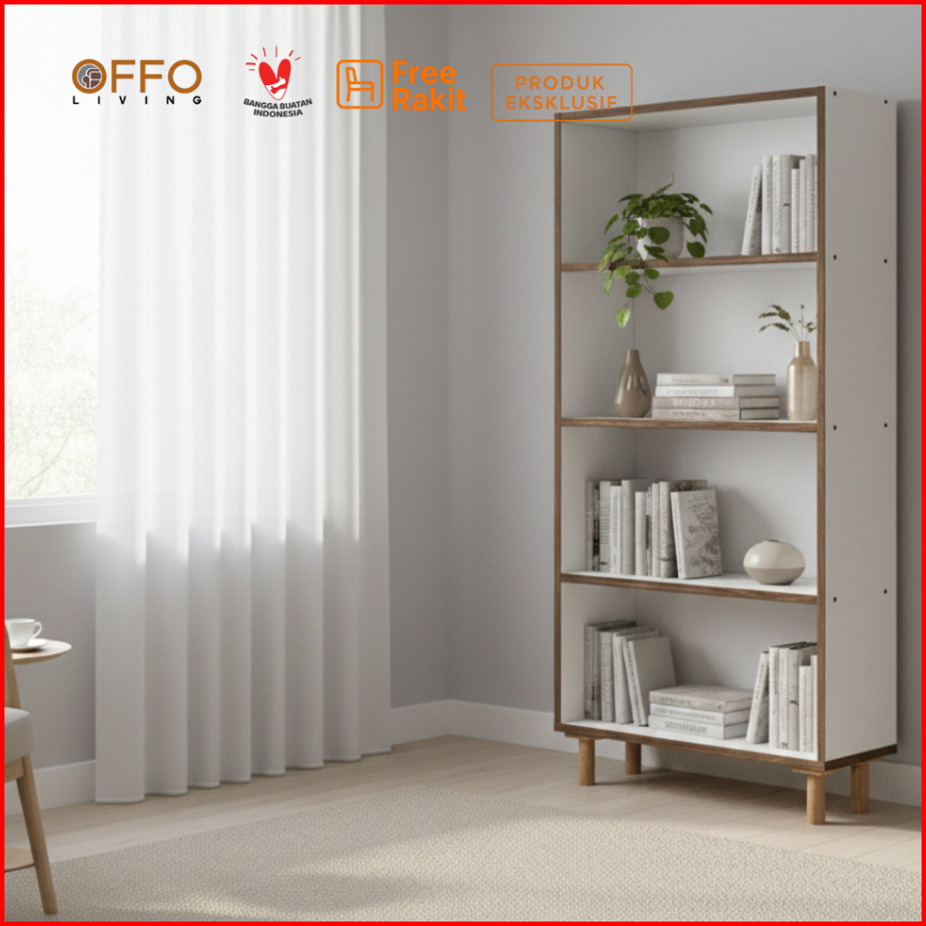 Offo Living - Rak Buku Portable Serbaguna Minimalis Ekonomis 4 Tingkat
