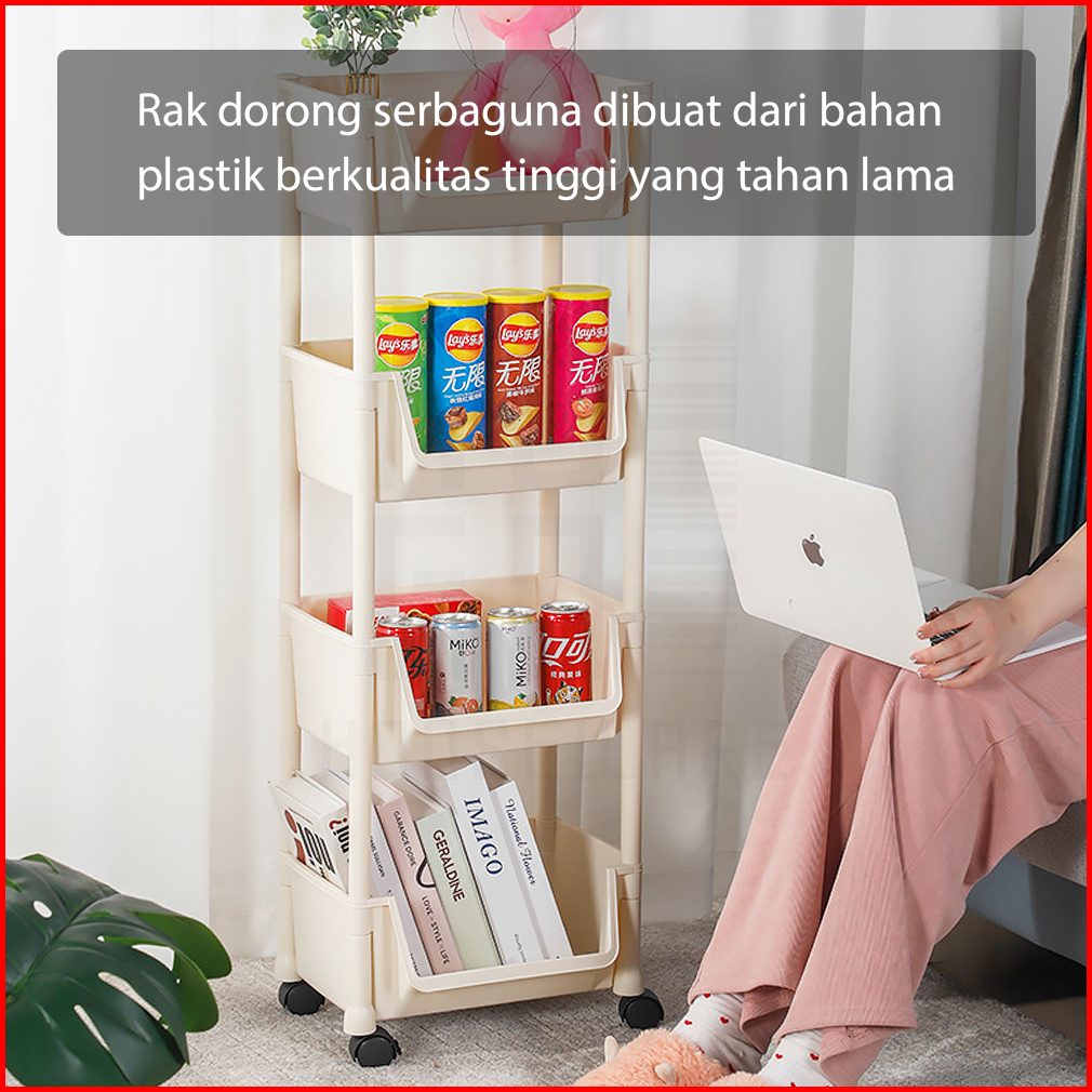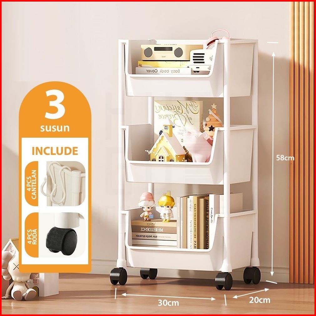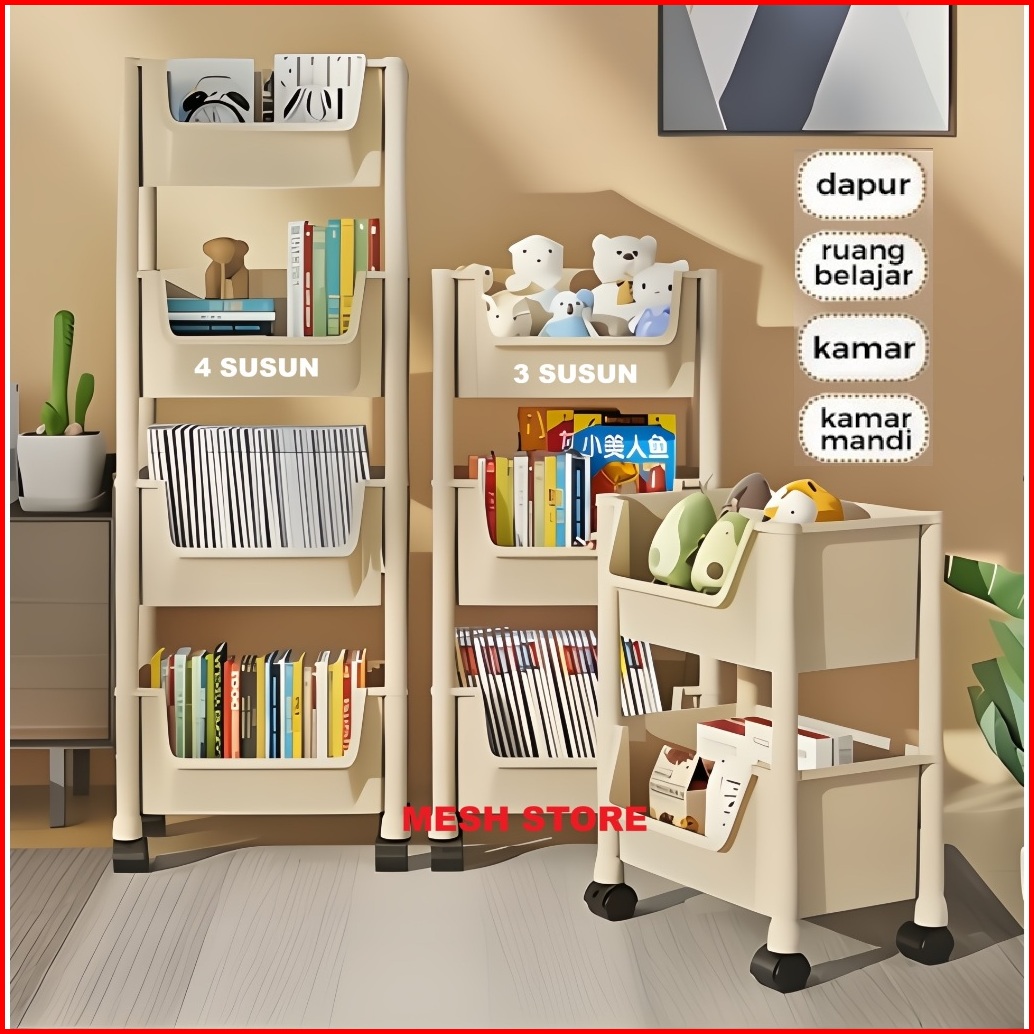 Mesh Rak Susun Serbaguna 3-5 Tingkat Dengan Roda Portable Untuk Buku Mainan Penyimpanan