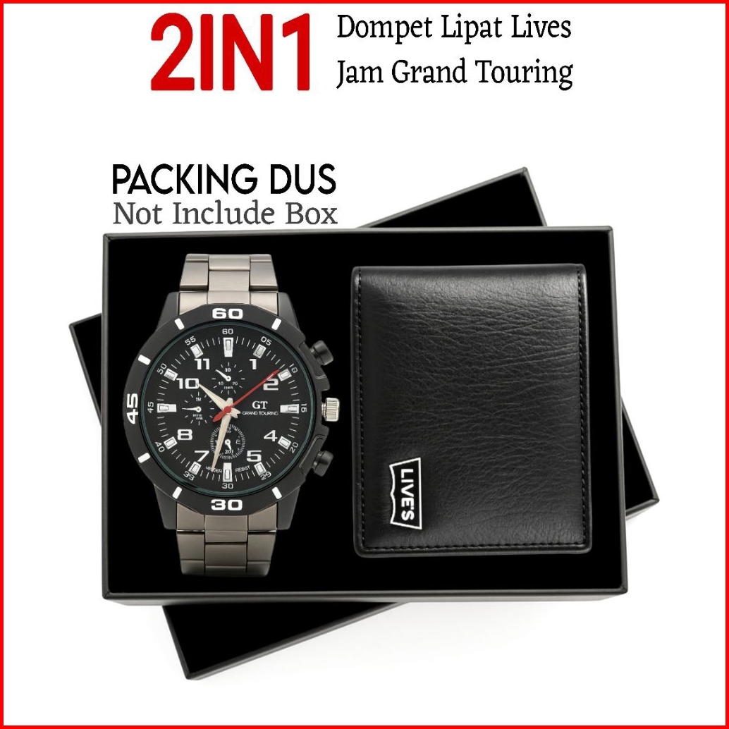 Paket Promo 2in1 Dompet Lipat Cowok Kulit Sintetis -s Gratis Jam Tangan Rantai Keren