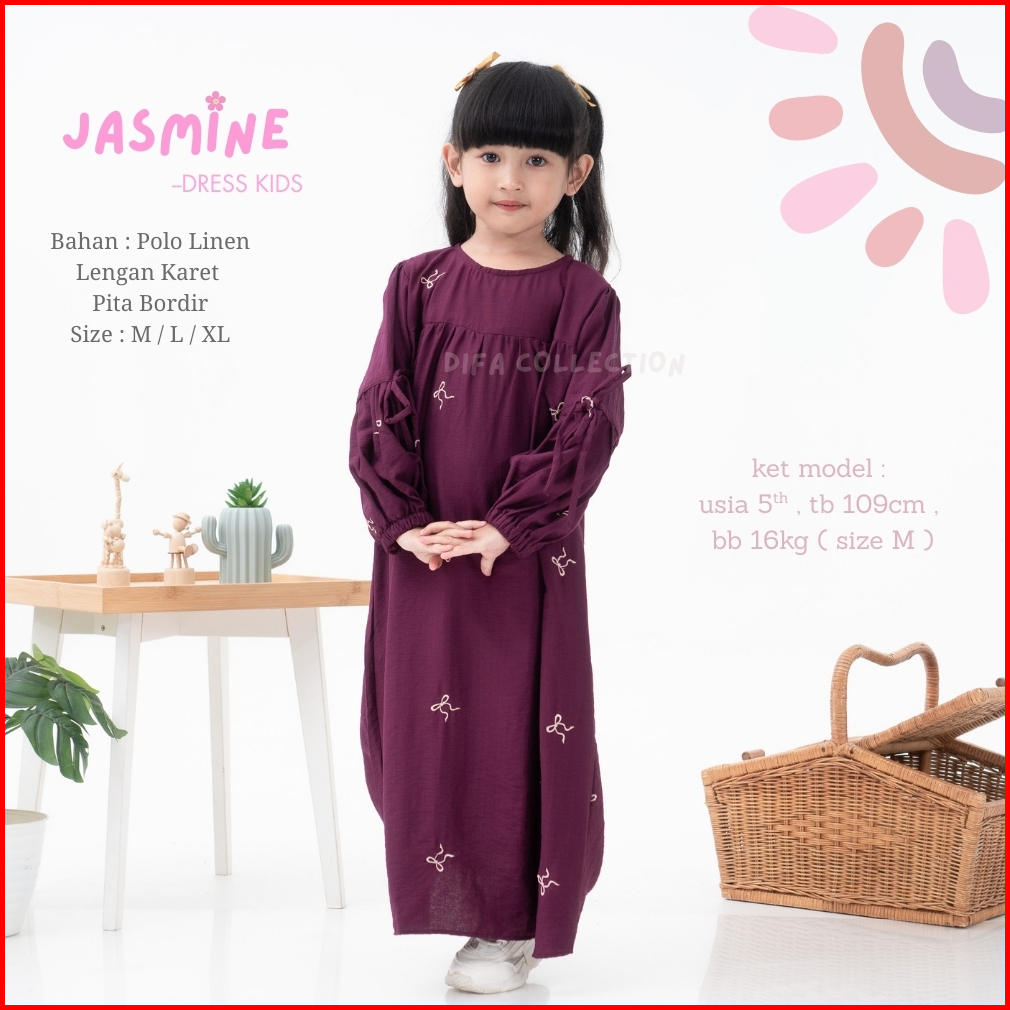Calla Dress Gamis Anak Perempuan Usia 4-10 Tahun Pita Bordir By Difa Collection