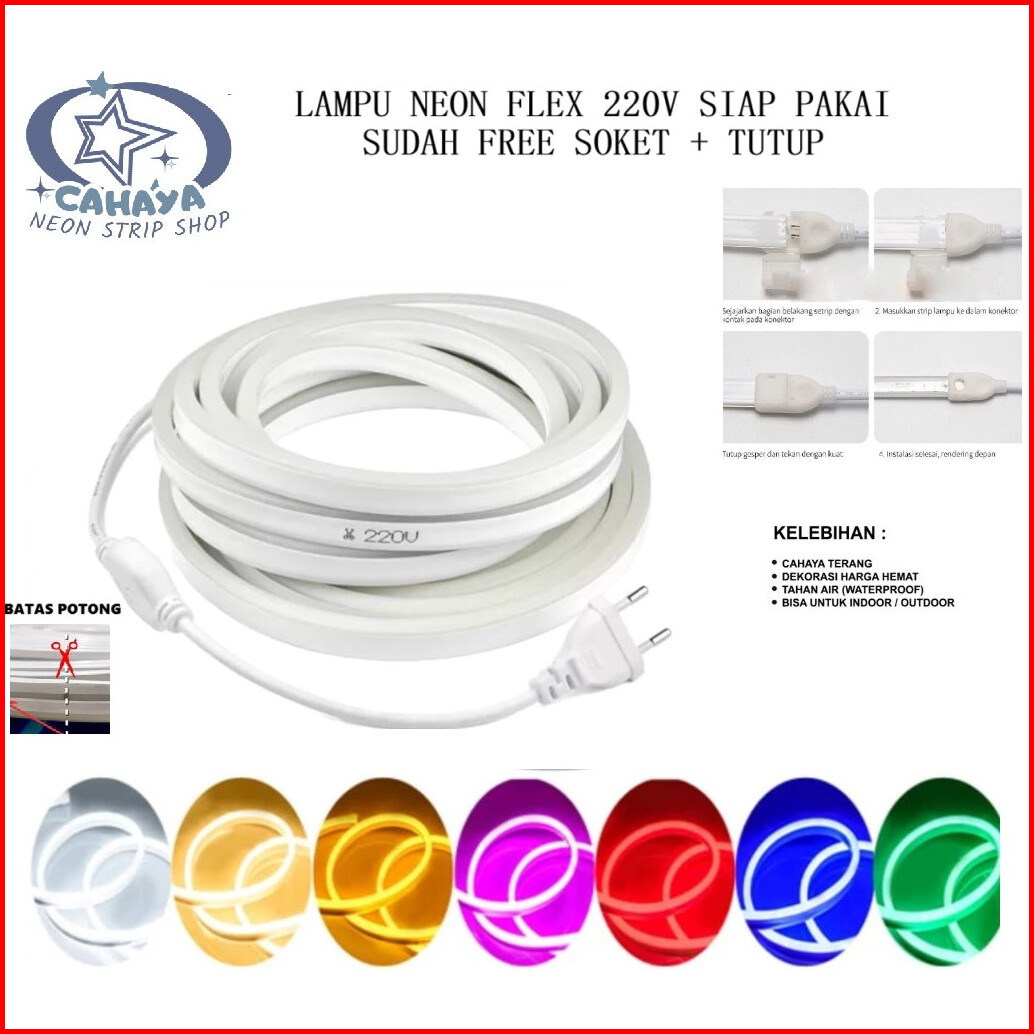Siap Pakai Paket Lampu Neon Flex 220v 1m 2m 3m 4m 5m Soket Tutup Tinggal Pakai Led Selang Fleksibel 220v Warna Neon Box