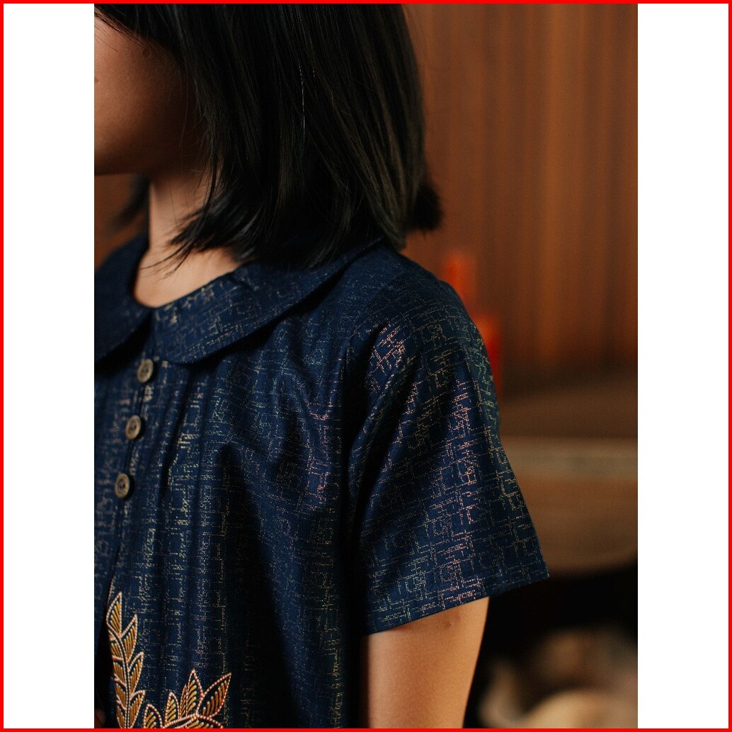 Adyatma Adhiwangsa Navy Dress Batik Anak Wanita Lengan Pendek Katun Foil