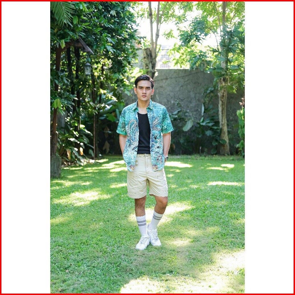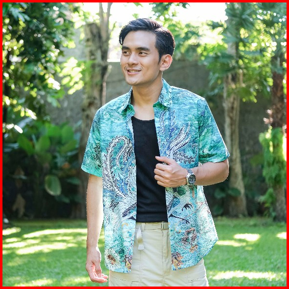 Batik Adyatma Pria Nava Turqoise Kemeja Pendek Slim Fit Digital Print